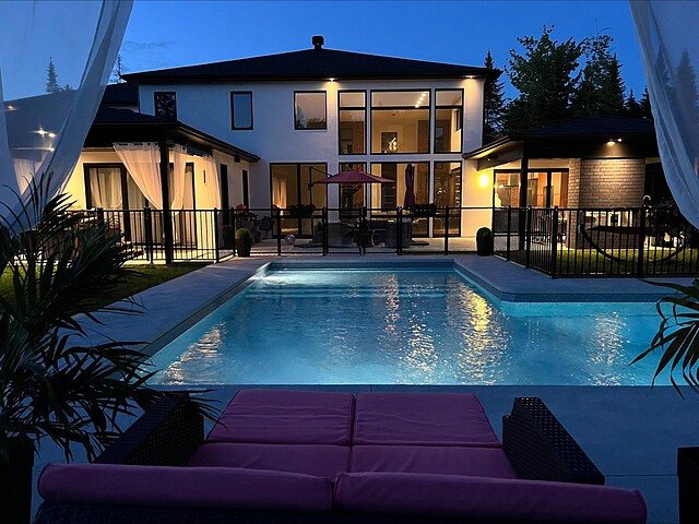 Cette résidence de prestige se distingue par son haut niveau de conception et son design à la fois moderne et industriel ! Avec ses vastes espaces, ses hauts plafonds de 18 pieds ainsi que sa fenestration abondante, chaque pièce est inondée de lumière naturelle. Conçue et pensée dans les moindres détails ; planchers chauffants, foyers, quartier des maîtres privé et bien plus. Sise sur un terrain privé de plus de 3,7 acres, vous y découvrirez un aménagement extérieur idéal pour recevoir : piscine creusée, cuisine extérieure et vaste terrasse. Située au bout d'une rue paisible sans issue, cette adresse est un véritable coup de coeur!