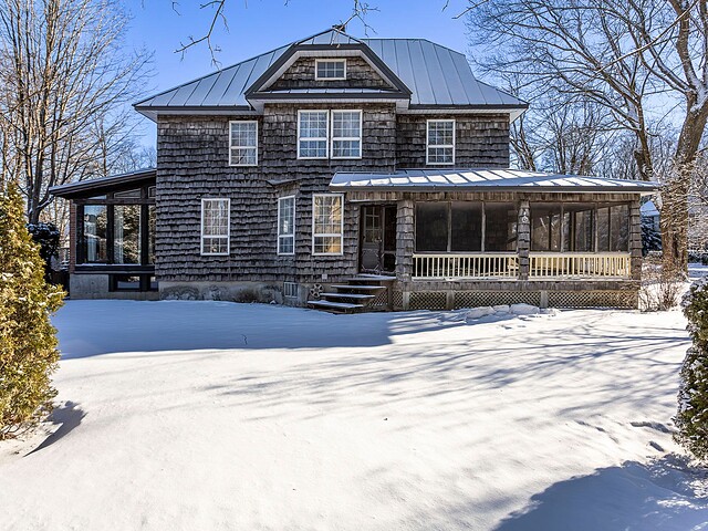 Propriété unique au coeur du magnifique village de Bedford! Construite en 1939, cette demeure au charme rustique se distingue par ses vastes espaces et son excellent potentiel d'aménagement. Plafonds cathédrale avec poutres de bois apparentes, foyer en pierre et fenestration abondante ! Elle propose 4 chambres, idéale pour une grande famille ou pour recevoir. Son terrain de près de 17 000 pi² est magnifiquement aménagé avec sentiers de pierre, arbres matures, pergola avec vignes, fontaine de jardin et terrasse. Garage double chauffé, plus de 10 stationnements et toiture en tôle(durabilité ++). À 50 minutes de Montréal via l'autoroute 35!
