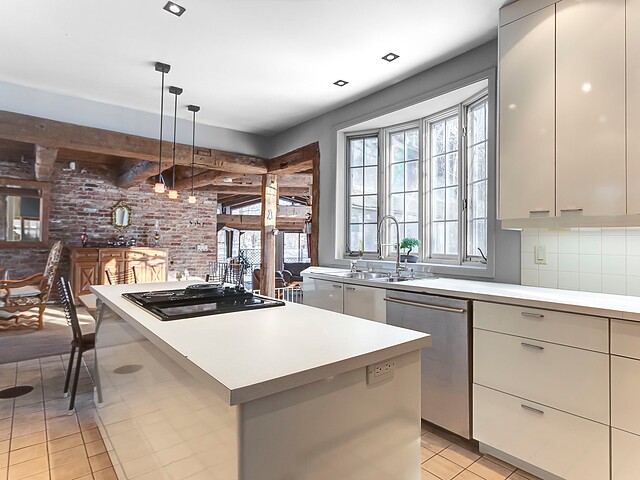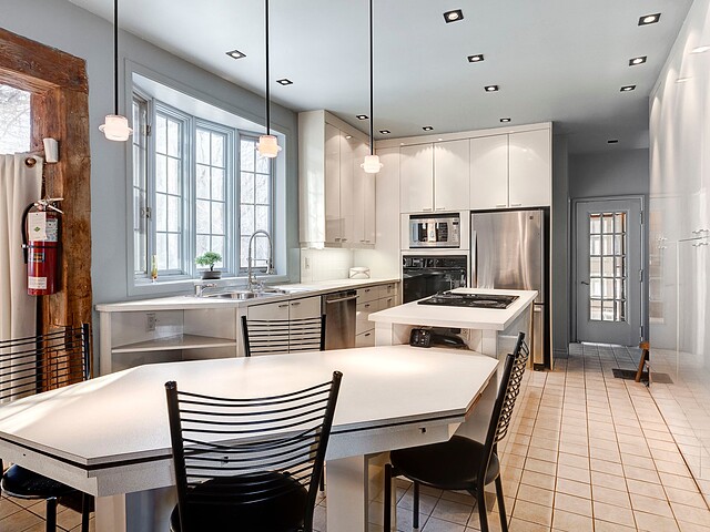 On y retrouve plusieurs espaces polyvalents, incluant une salle d'eau et des boudoirs, offrant une grande flexibilité d'aménagement. La cuisine à aire ouverte, dotée d'un vaste îlot central, est idéale pour recevoir et s'ouvre harmonieusement sur la salle à manger et la salle familiale, créant un espace de vie convivial.
