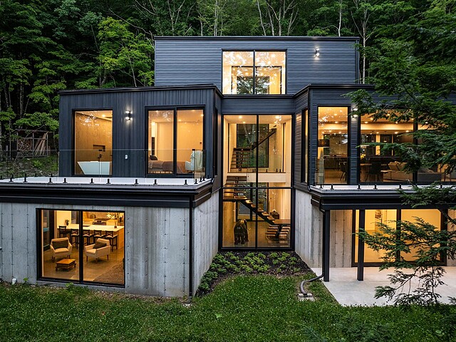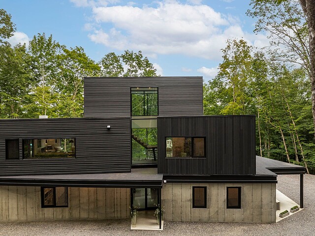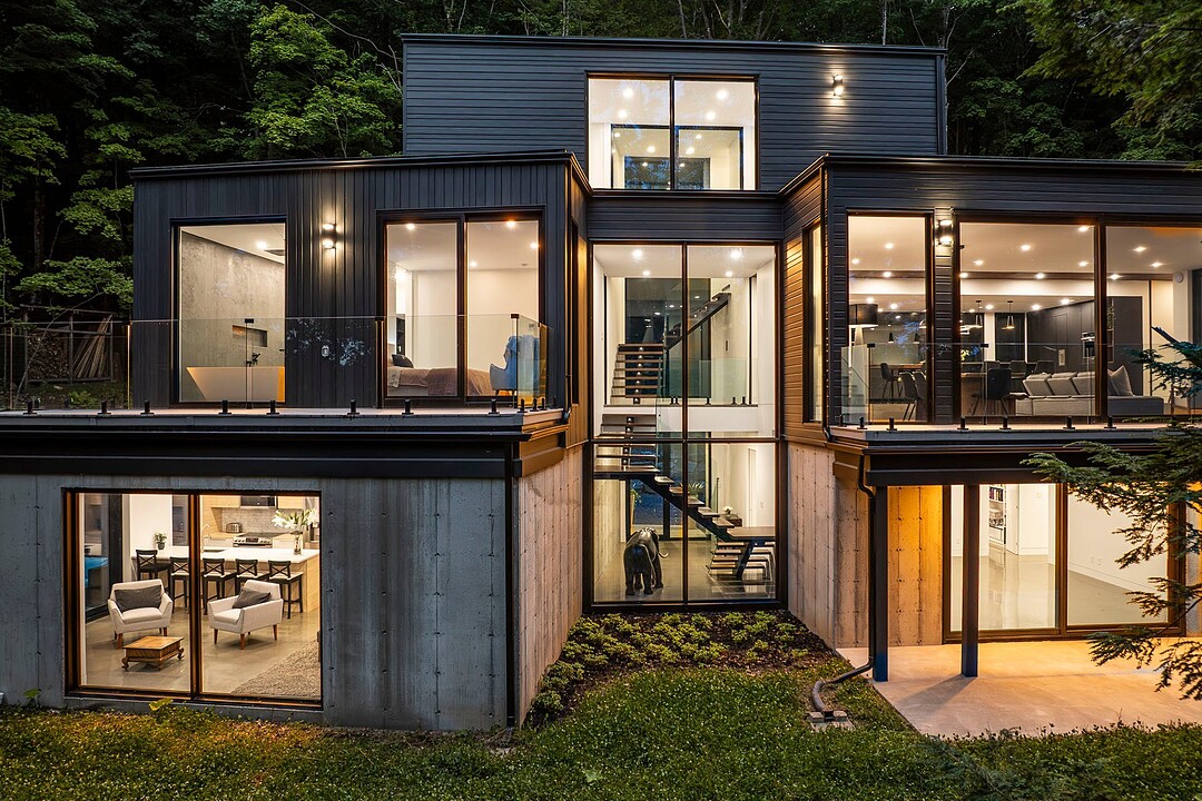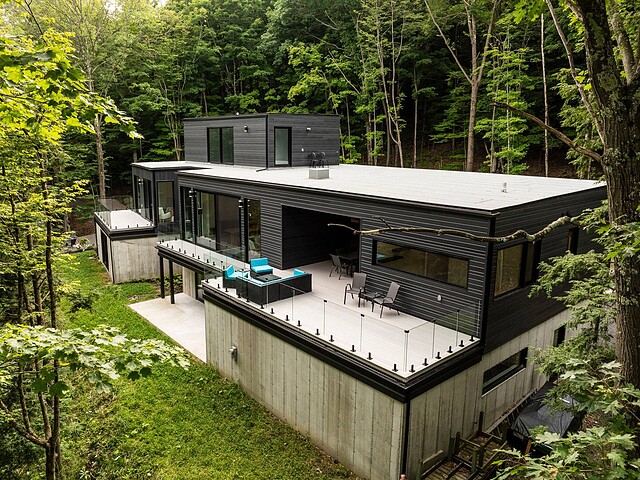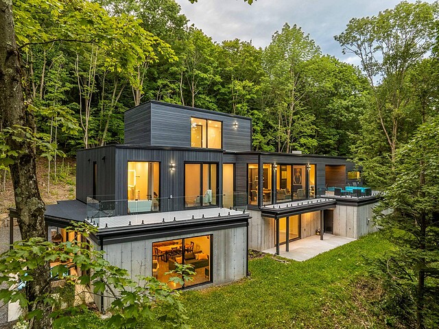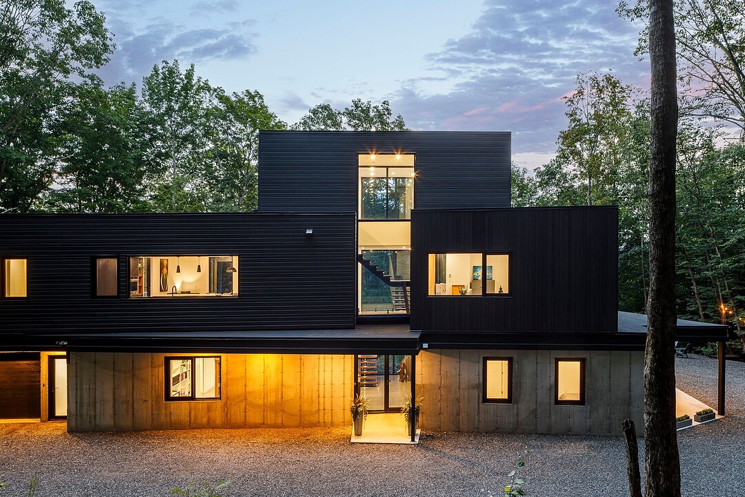 Nichée au coeur d'un environnement naturel préservé, cette résidence moderne au design distinctif, offre un cadre de vie aussi inspirant qu'apaisant. Située au sommet du mont Aki, elle bénéficie d'une fenestration abondante qui inonde les espaces de lumière naturelle et ouvre sur une vue spectaculaire sur un domaine forestier de plus de 25 acres -- un véritable sentiment d'immersion en nature, en toute intimité. Un lieu idéal pour ceux qui recherchent calme, design et qualité de vie, à seulement quelques minutes des service, du village, des pistes de ski et des sentiers de randonnée. Une propriété exclusive où il fait bon vivre!
