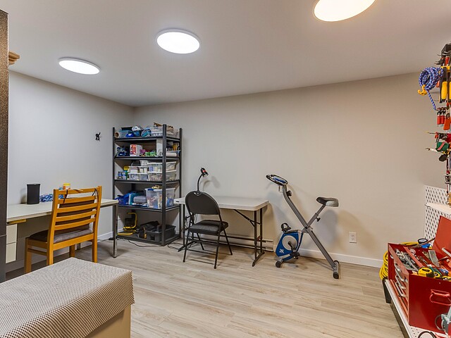 Le sous-sol, récemment aménagé, est muni d'une grande chambre à coucher, d'une salle de bain complète, une salle de couture, d'un atelier ainsi que plusieurs espaces de rangement.