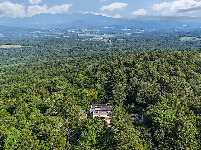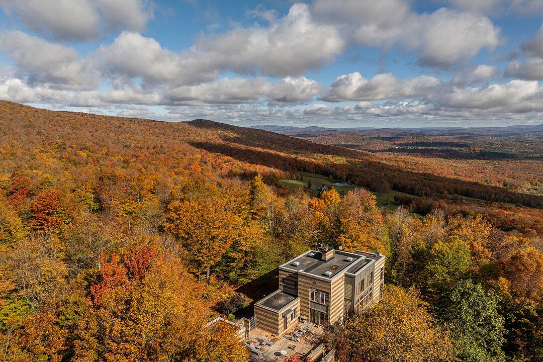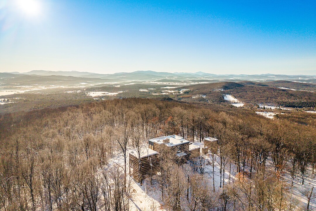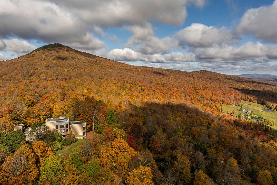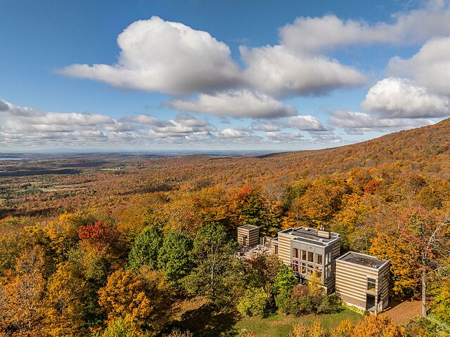 Située sur les flancs du mont Pinacle, la propriété offre une vue panoramique à 180 degrés allant du mont Sutton, en passant par Jay Peak et les montagnes du Vermont, jusqu'à la baie Missisquoi.