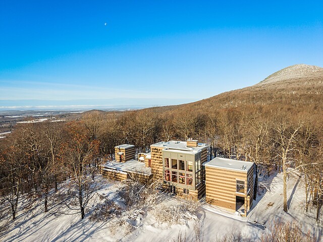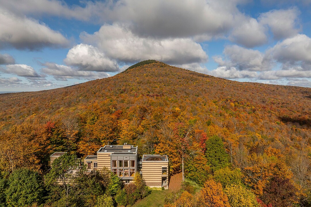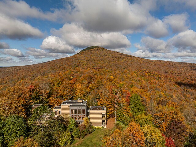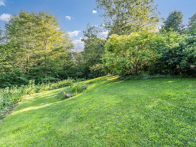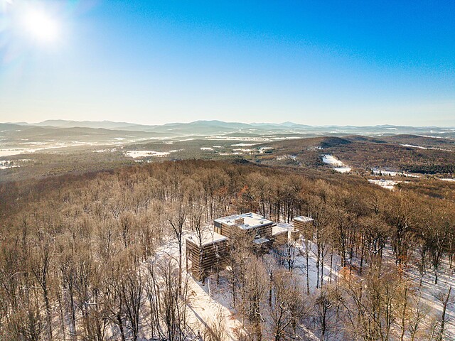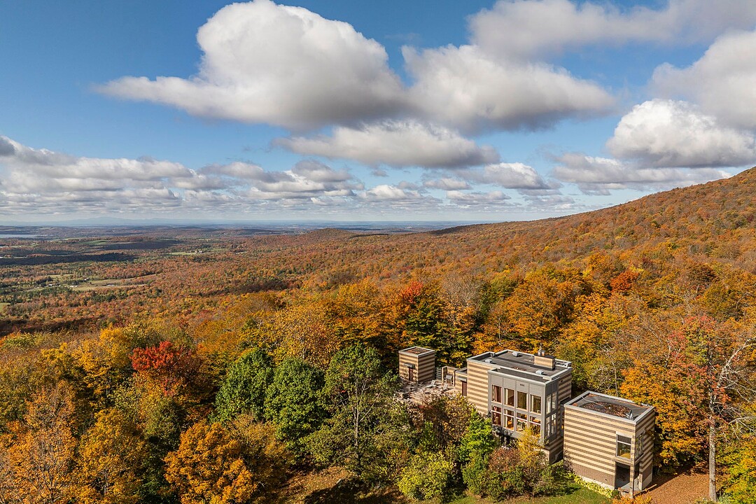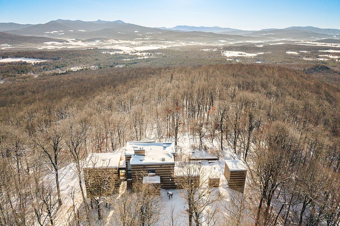 Située sur les flancs du mont Pinacle, la propriété offre une vue panoramique à 180 degrés allant du mont Sutton, en passant par Jay Peak et les montagnes du Vermont, jusqu'à la baie Missisquoi.