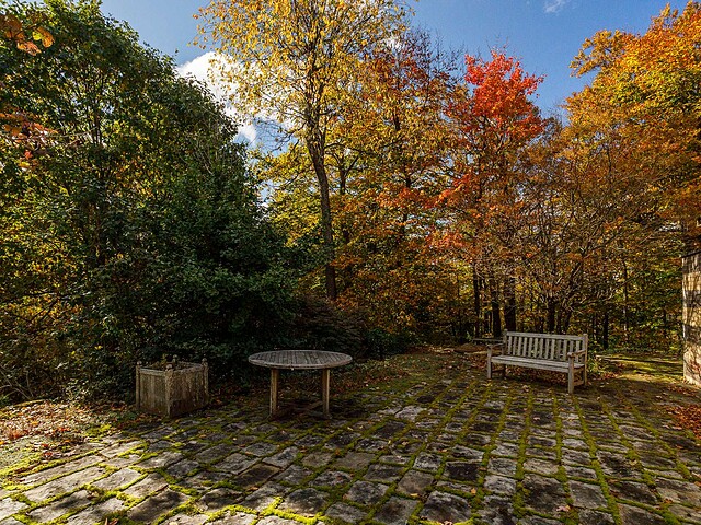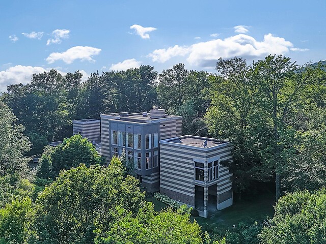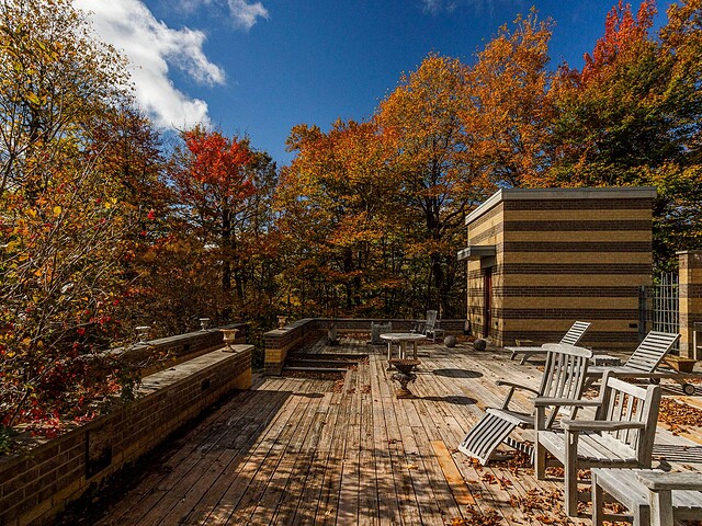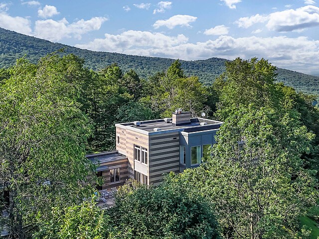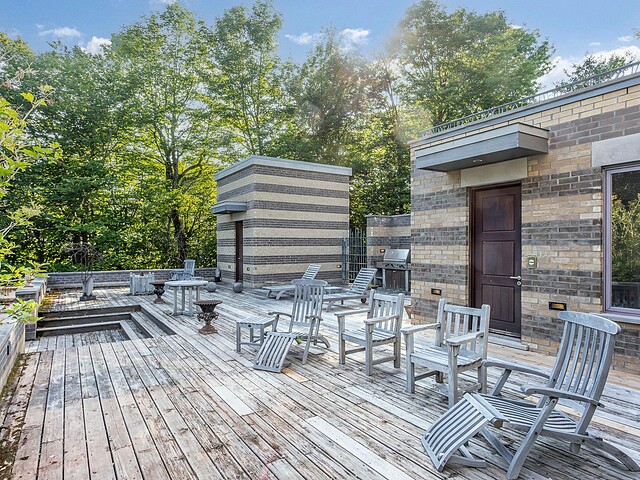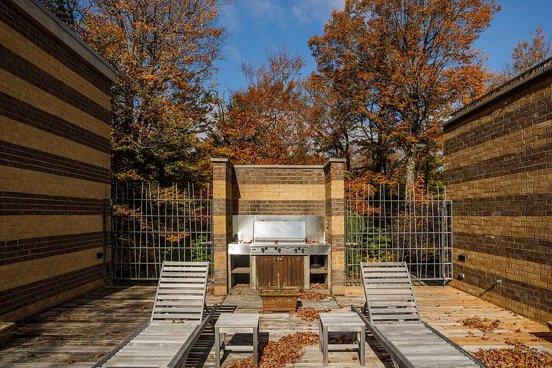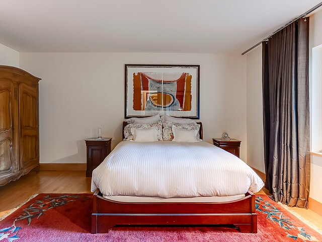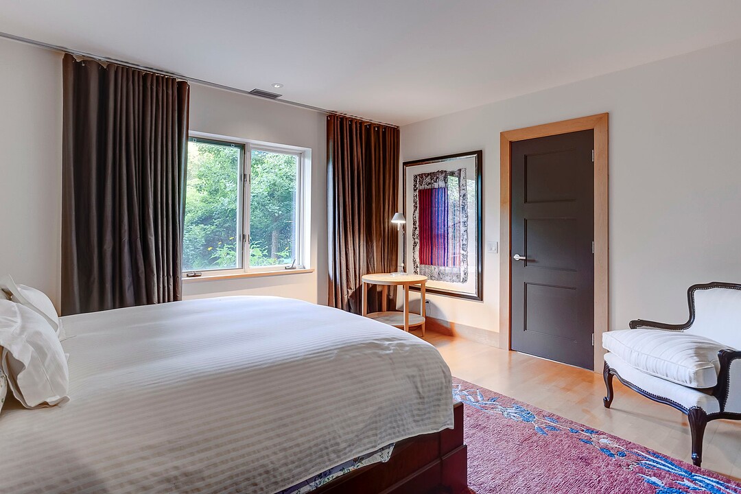 À l'abri des regards, l'extérieur propose de superbes aires de détente offrant une vue panoramique imprenable sur les montagnes, un vaste terrain boisé et un étang privé.
