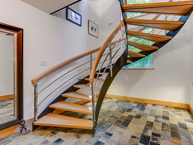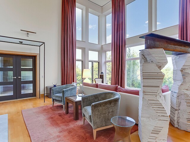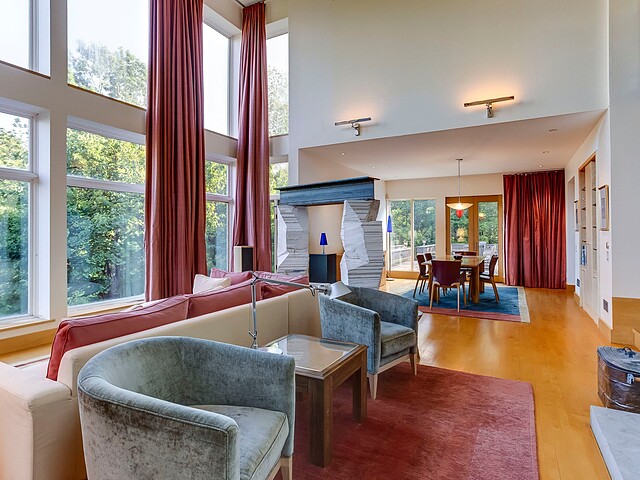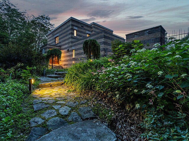 Signé par le designer René Desjardins, cette propriété unique marie à merveille architecture contemporaine et harmonie avec son environnement.