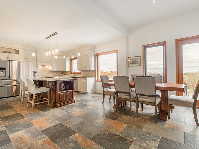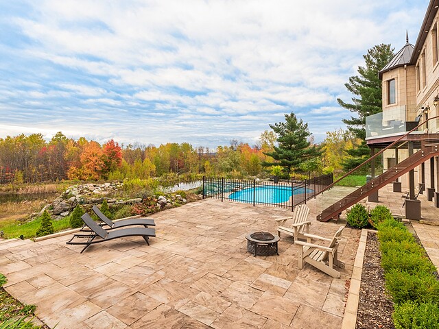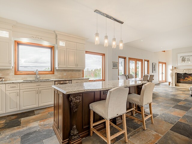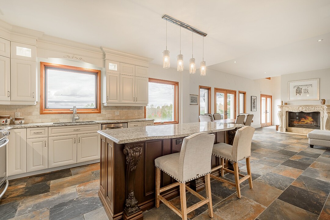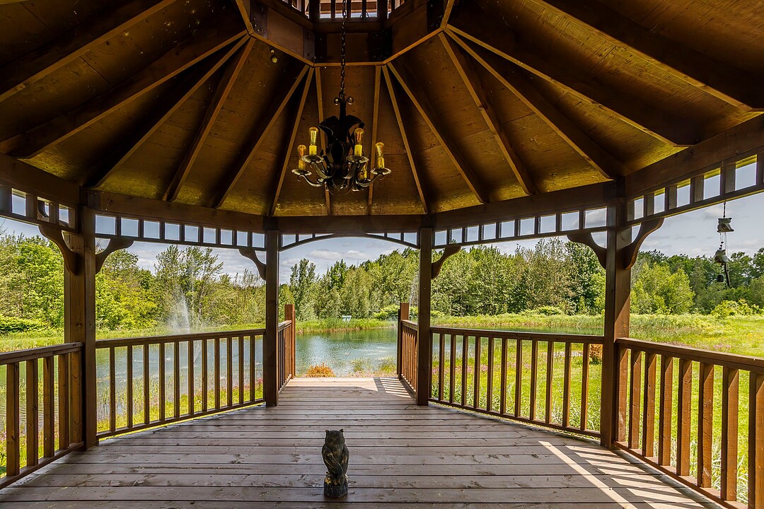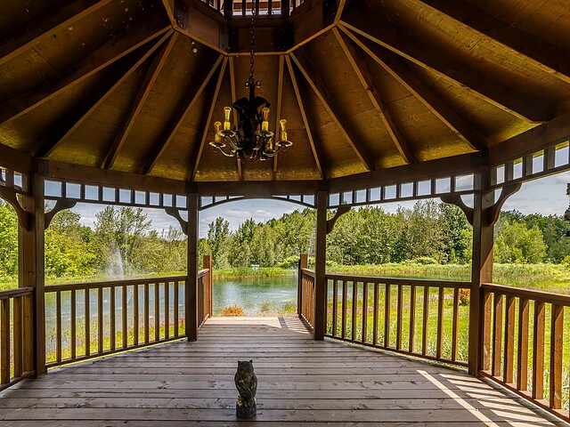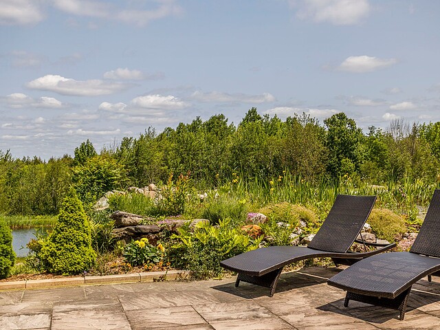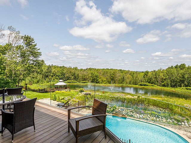 -portail d'entrée -piscine creusée chauffée -deux étangs privés -gloriette illuminée -potagers - 4 chambres à coucher et 2 bureaux -planchers de merisiers huilé, sans noeud -pièce idéale pour une future cave à vin -garage double avec accès à la maison, et au sous-sol -majestueux foyer au bois au salon et combustion lente dans la salle familiale au rez-de-jardin -armoires de cuisine en bois et comptoirs en granite -2 thermopompes centrales -grande terrasse en composite sur le toit -murs recouverts de peinture à la chaux