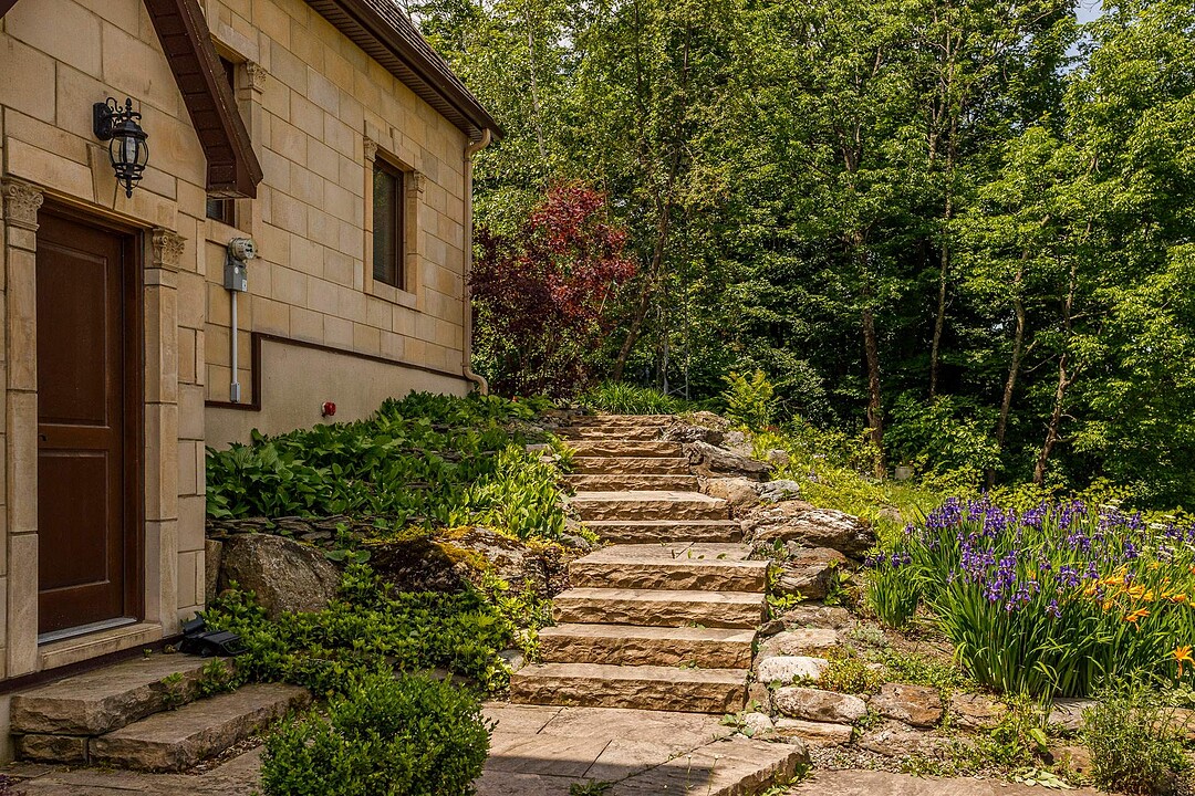 Située dans un environnement unique, cette propriété offre un refuge paisible tout en restant à proximité des commodités du pittoresque village de Knowlton et de Bromont.