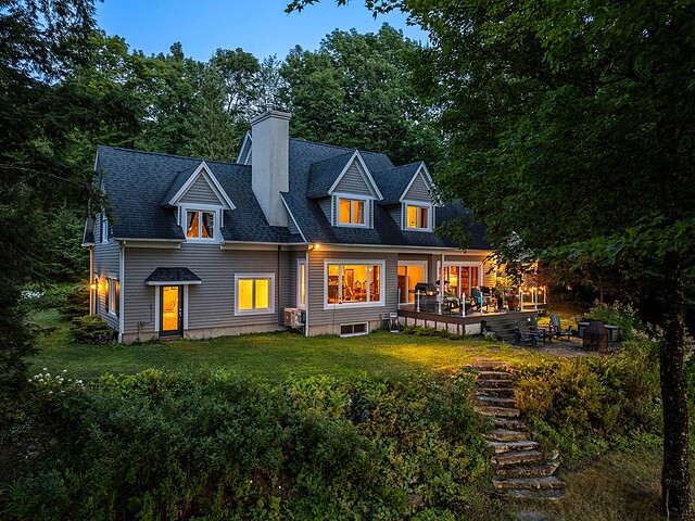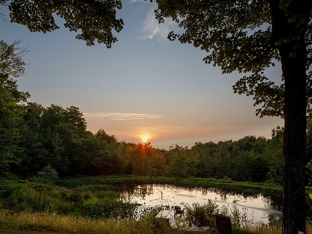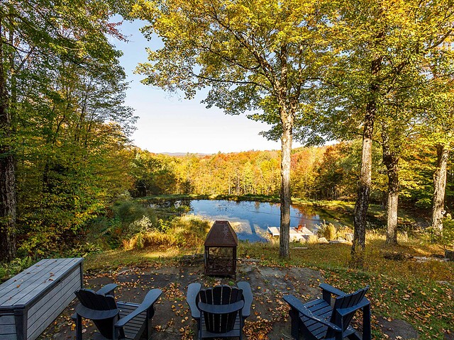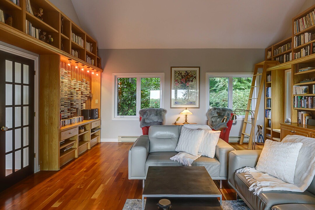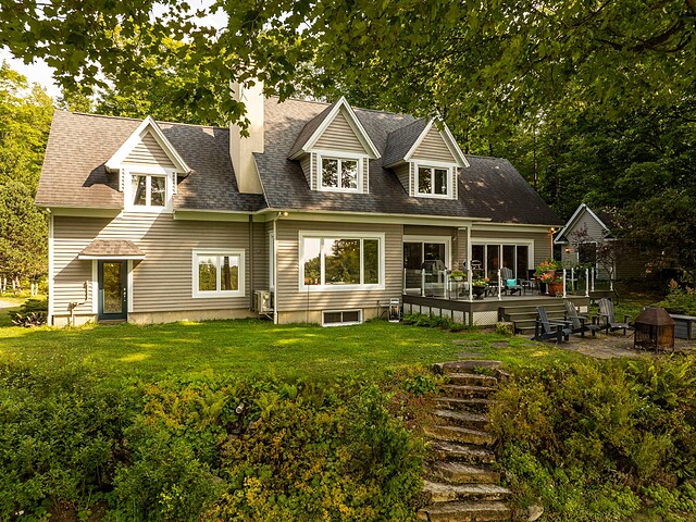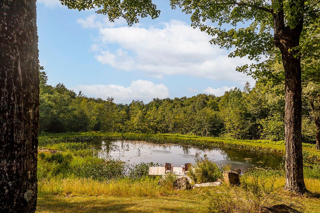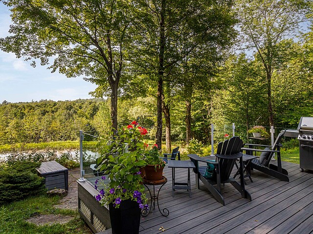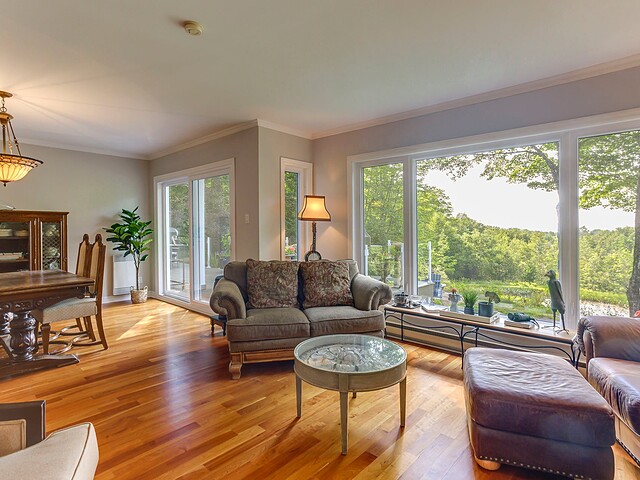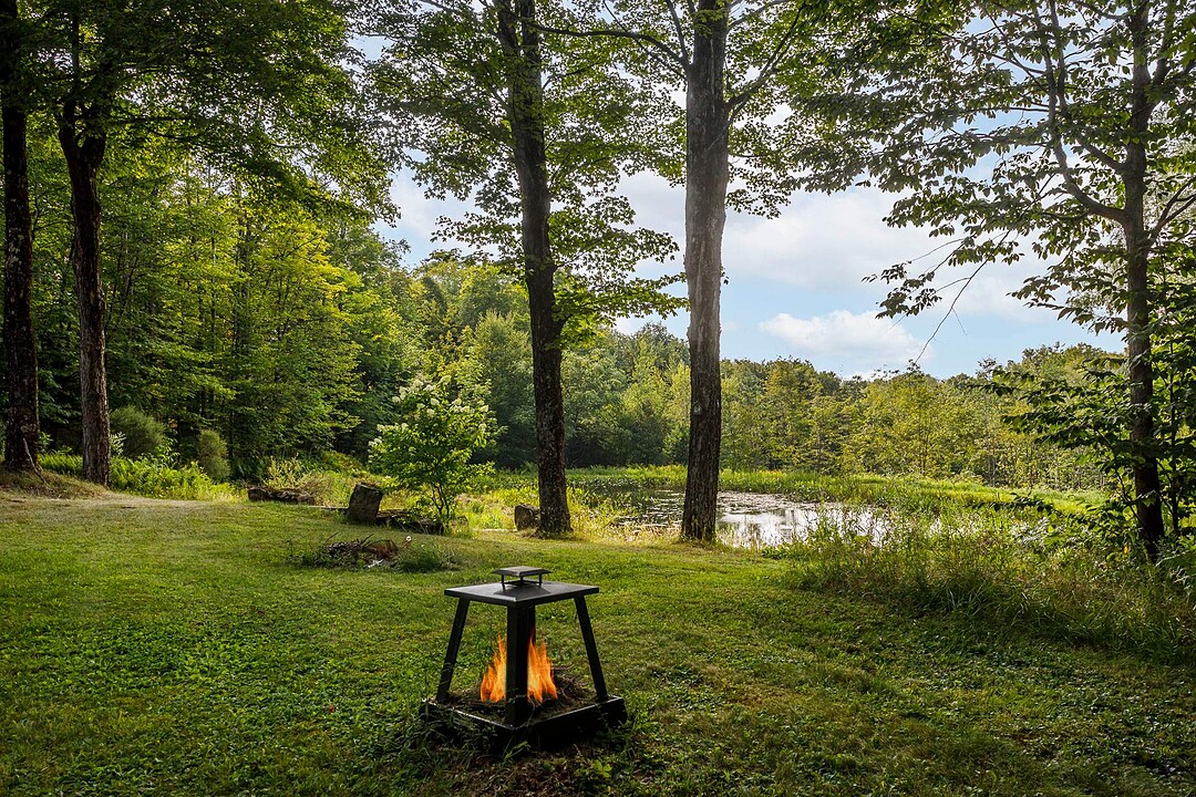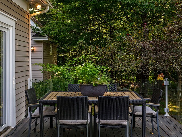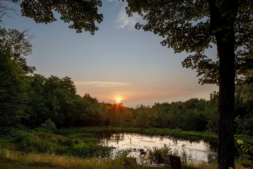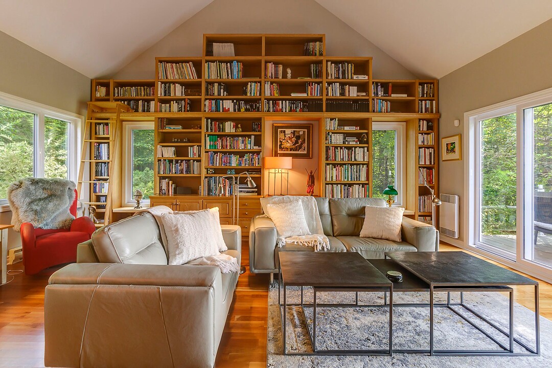 À l'extérieur, l'environnement est tout simplement splendide : arbres matures, étang privé avec quai, vaste terrasse en composite et intimité absolue sur un terrain de 7,86 acres. Un garage détaché et une remise complètent l'ensemble.