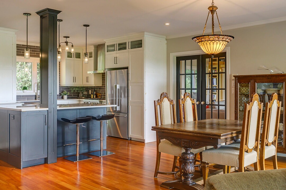 La cuisine, entièrement rénovée, propose un grand îlot convivial et de superbes comptoirs en quartz.