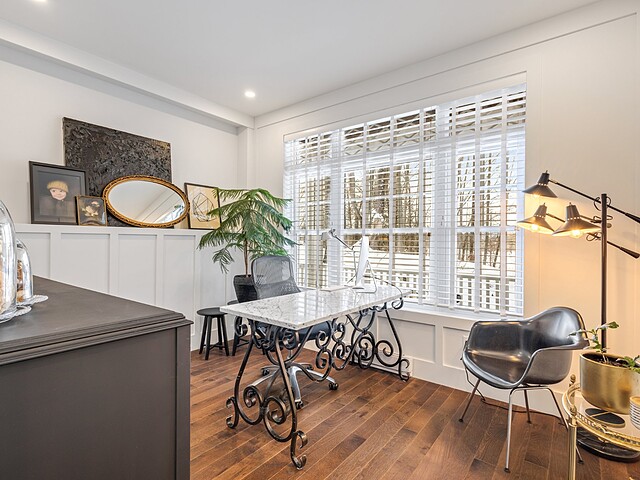 Sur le même niveau, on retrouve un bureau lumineux avec vue sur la nature, ainsi qu'une salle d'eau.