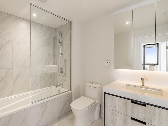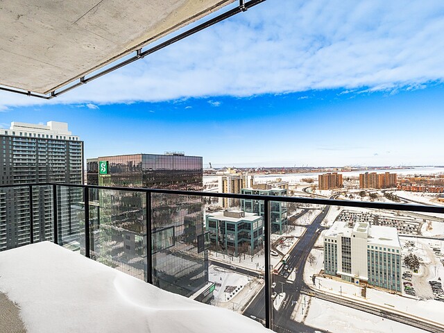 L'unité 2413 est une unité de coin située au 24e étage, offrant une superficie d'environ 985 pc, comprenant deux chambres à coucher, deux salles de bain complètes et un balcon privé.