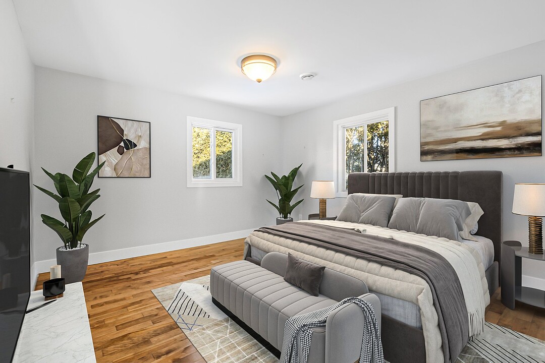 À l'étage, la chambre principale et la salle de bains complète assurent un confort optimal au quotidien.