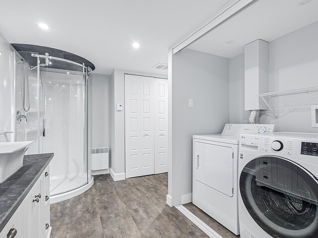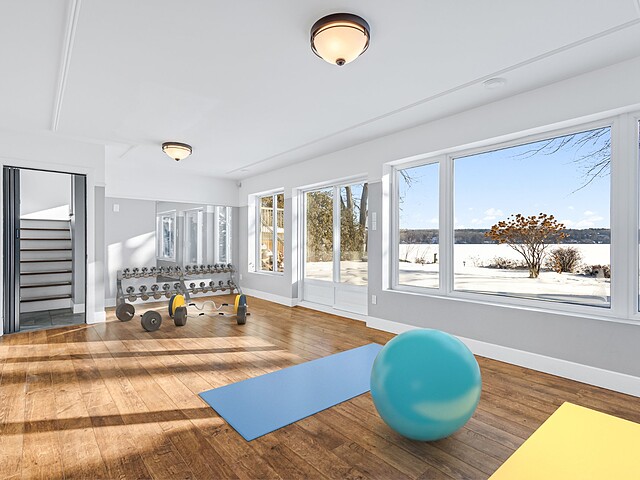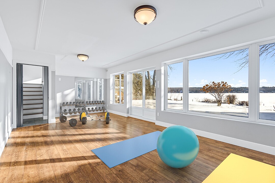 Une superbe pièce au rez-de-jardin offre une grande polyvalence et se prête parfaitement à l'aménagement d'une chambre additionnelle, d'une salle d'entraînement ou d'un espace multifonction.