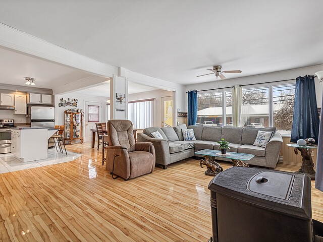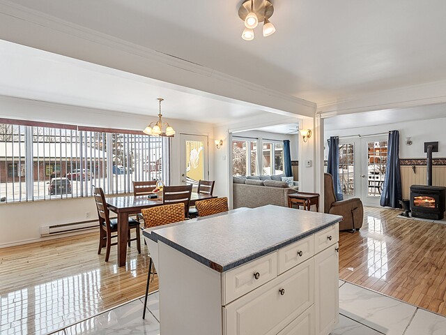 Le salon est accueillant et agrémenté d'un poêle aux granules.