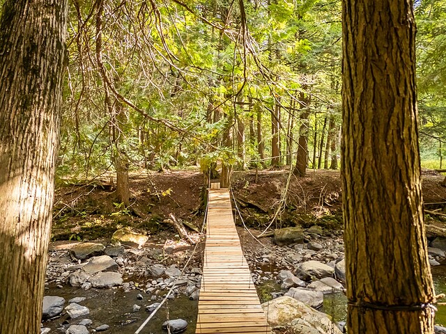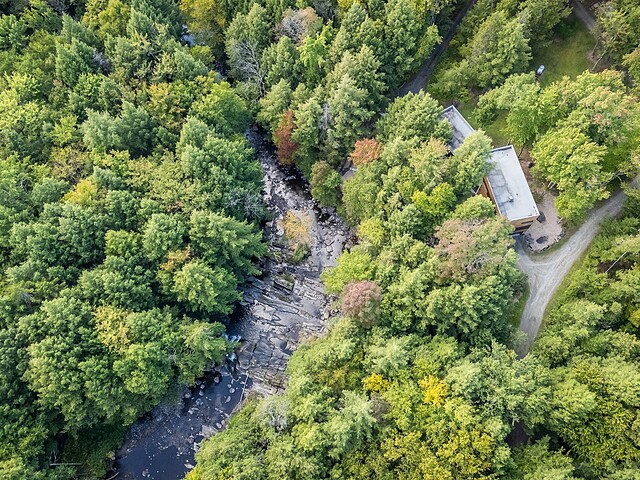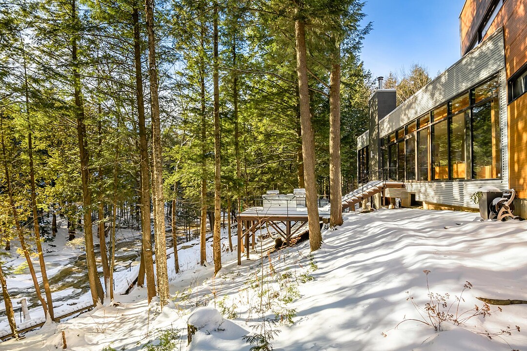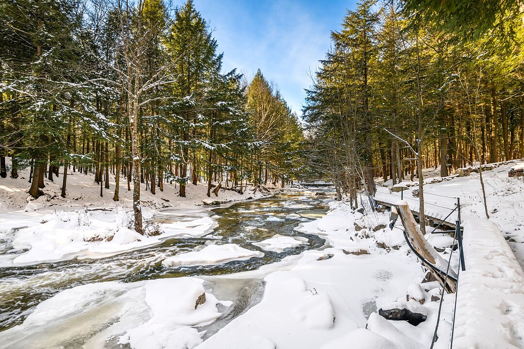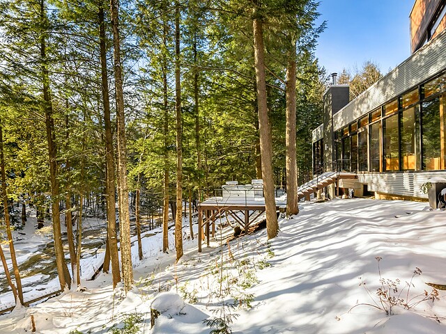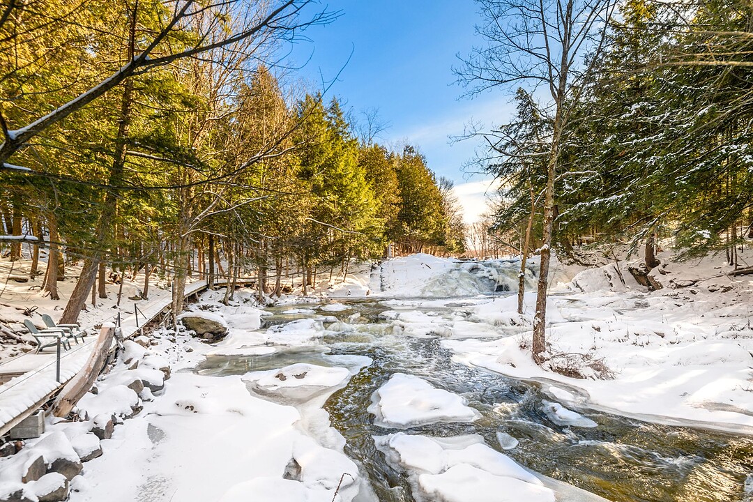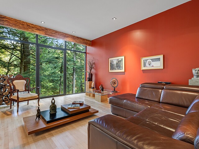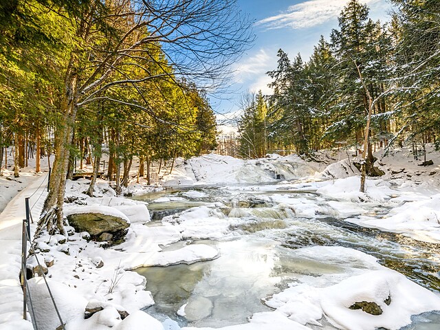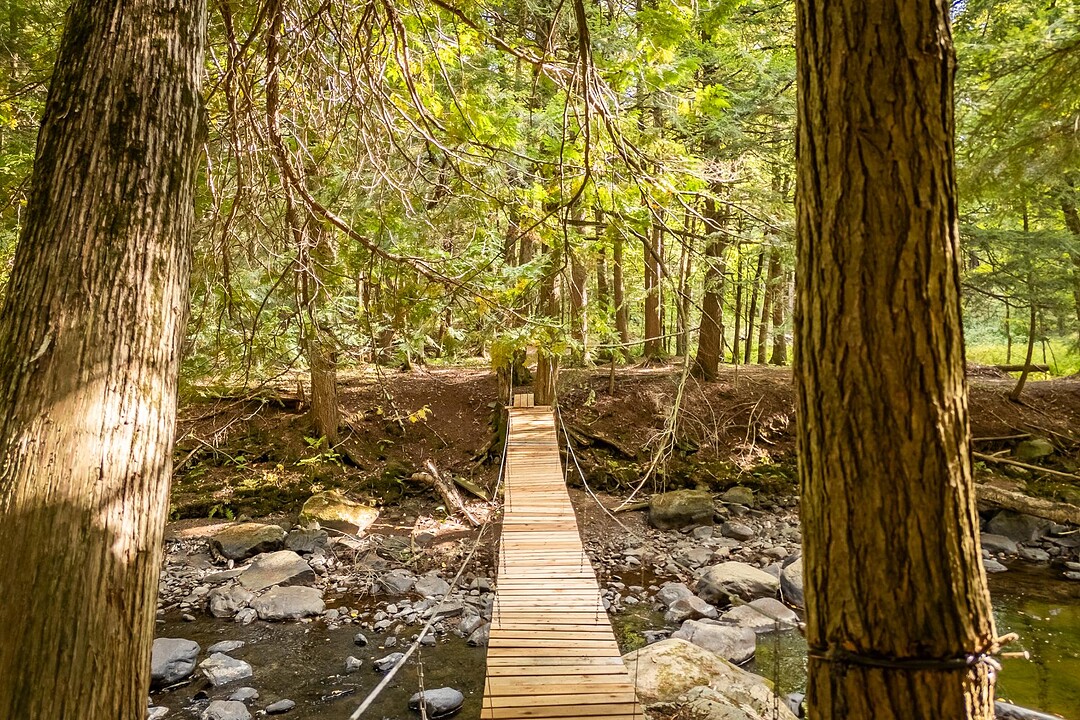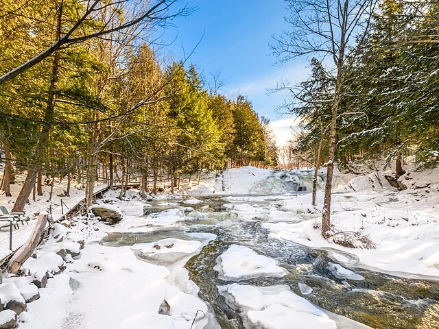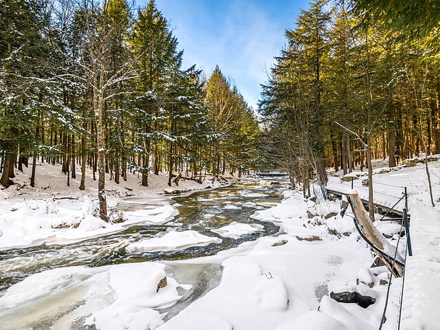 En retrait de la route, cette résidence se déploie au coeur d'un terrain boisé de 15 acres, garantissant intimité et tranquillité. La rivière Yamaska Nord traverse la propriété, offrant cascades, ponts et rives accessibles. Des sentiers aménagés parcourent le domaine, permettant de profiter pleinement de la beauté naturelle du site.