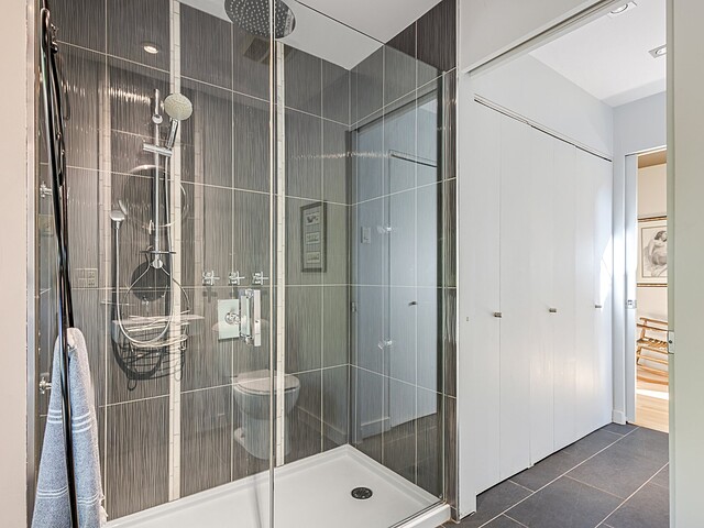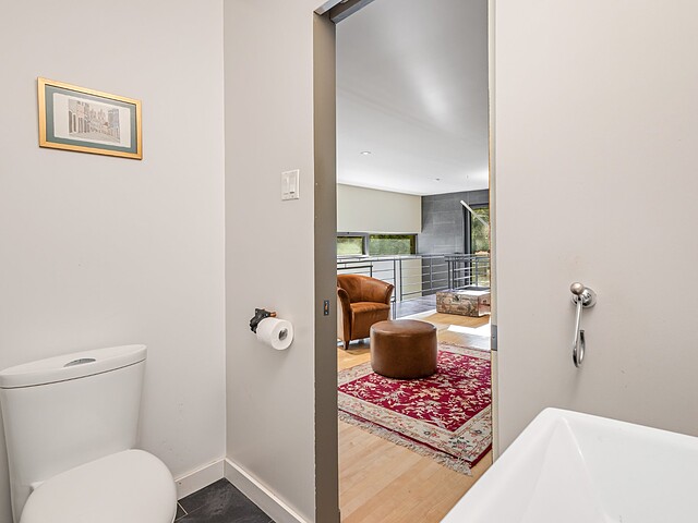 À l'étage, le quartier des maîtres propose un espace privé comprenant un boudoir, un accès à la terrasse sur le toit ainsi qu'une salle de bain attenante à la chambre principale.