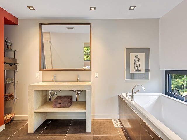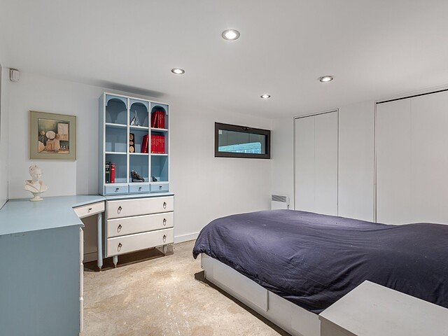 Le sous-sol a été pensé pour les amateurs de vin, avec une cave attenante à un espace de dégustation. Une troisième chambre y est également aménagée, offrant intimité et confort aux invités.