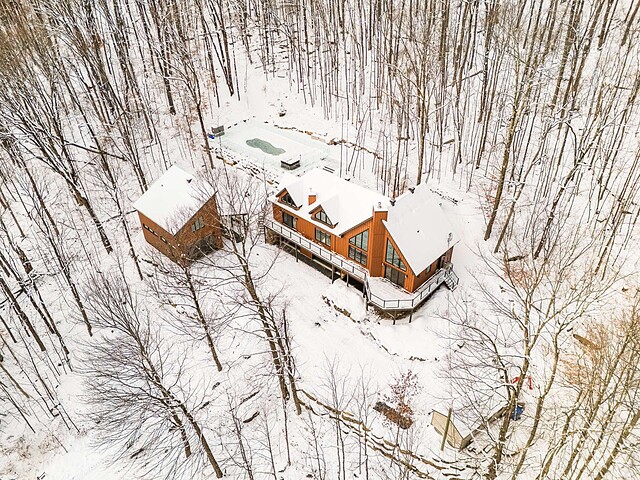 Perchée en hauteur sur un terrain de 1,6 acre, profitez d'une vue exceptionnelle et d'une intimité inégalée.