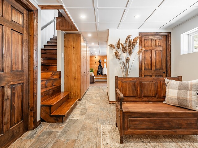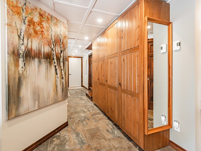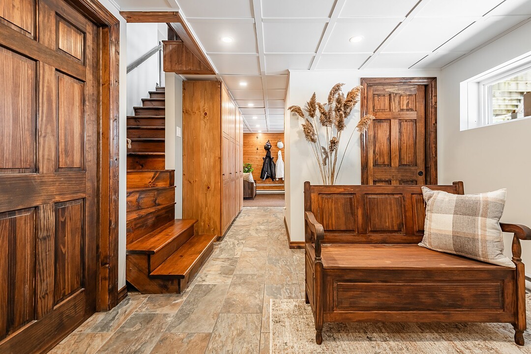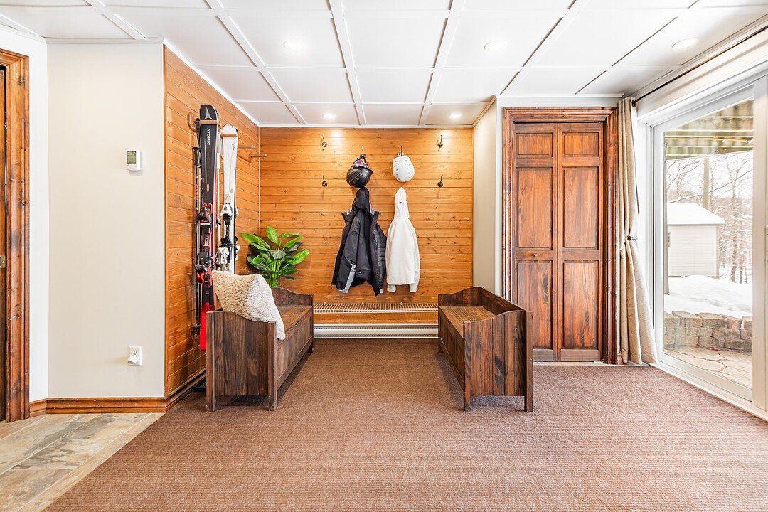 Au rez-de-jardin, profitez d'un vaste"mudroom"munie de meubles intégrés, parfait pour toutes vos activités de plein air.