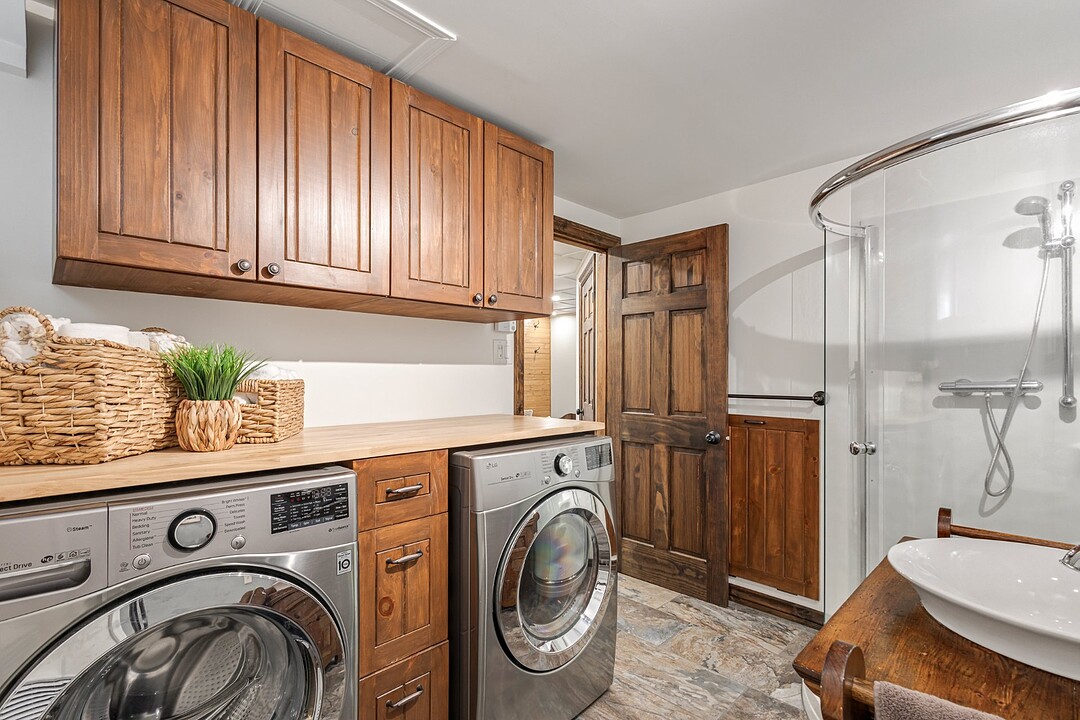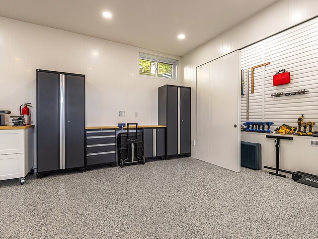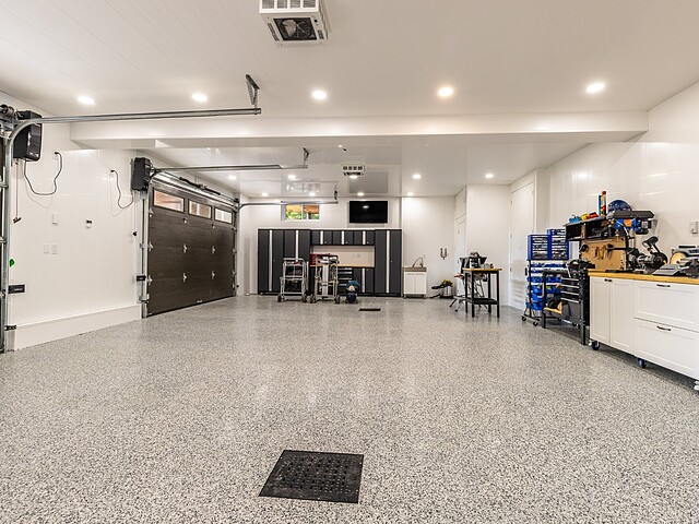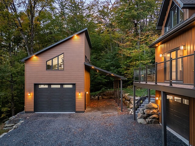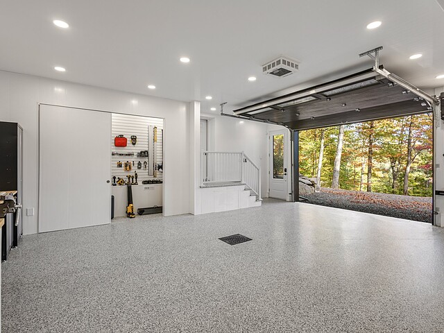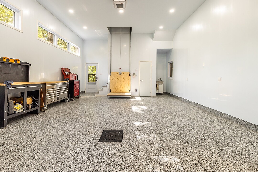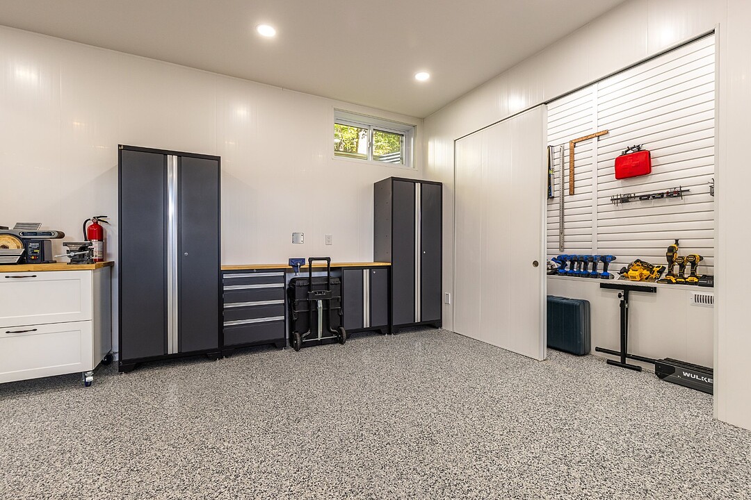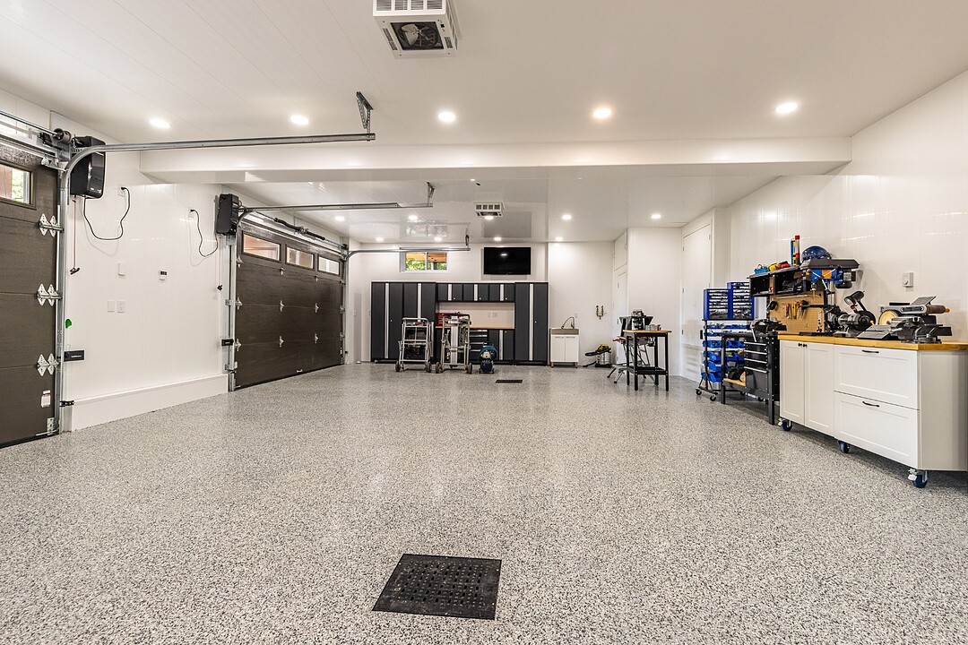 Elle se distingue aussi par son garage double attaché et son garage détaché. Tous deux disposent d'un fini intérieur résistant à l'eau en vinyle, de planchers chauffants, de planchers recouverts d'époxy et d'espaces de rangement.