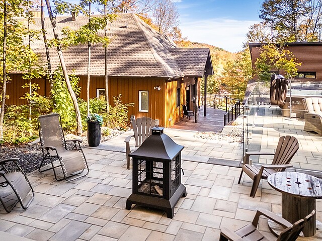 À l'extérieur, profitez de 2 terrasses ainsi qu'un coin piscine avec spa,espace de détente et coin feu.
