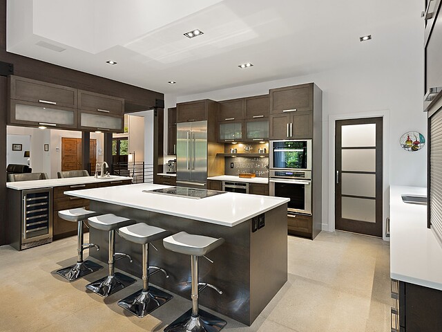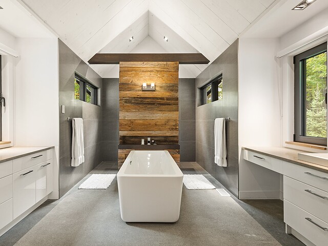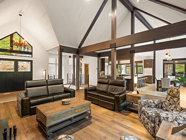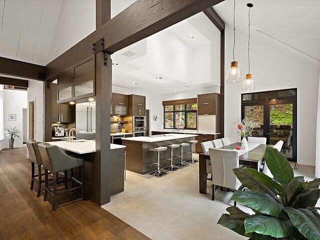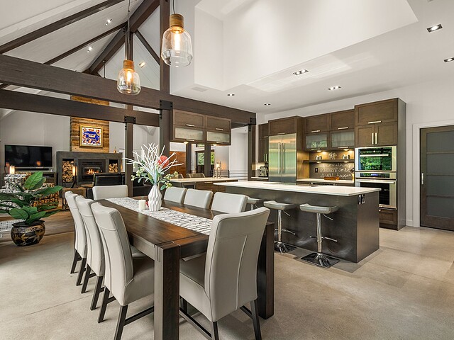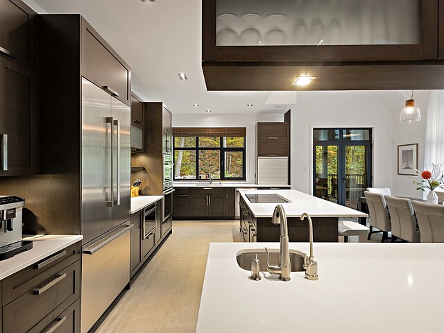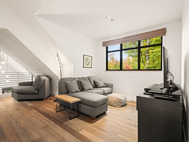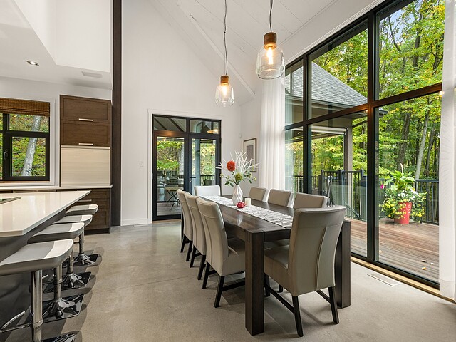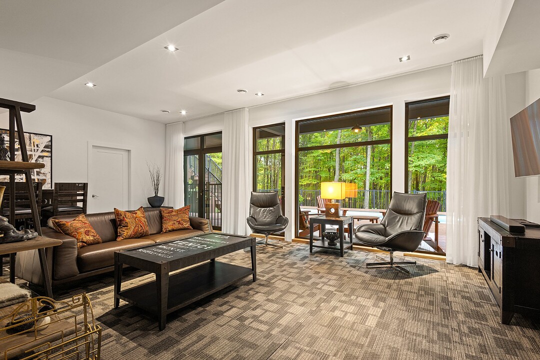 Ses volumes impressionnants, avec des plafonds atteignant près de 20 pieds, sa fenestration abondante et ses matériaux haut de gamme créent un espace aussi lumineux qu'élégant.