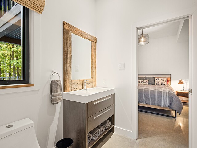 Parfaitement intégrée à son environnement, cette réalisation de l'architecte Caroline St-Cyr offre une expérience clé en main en pleine nature.