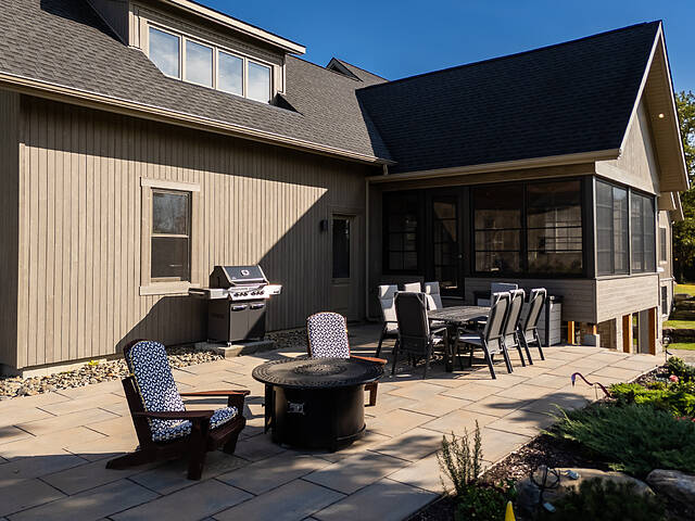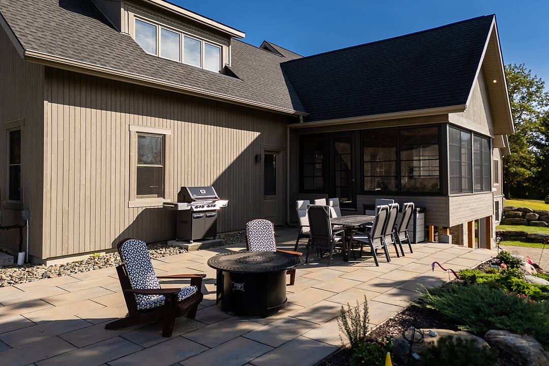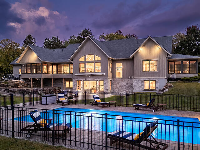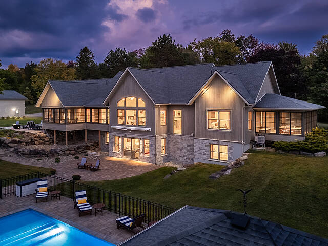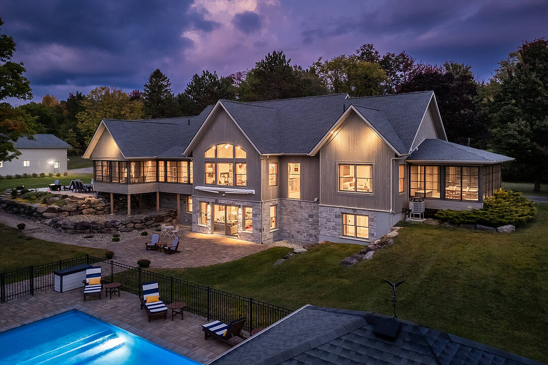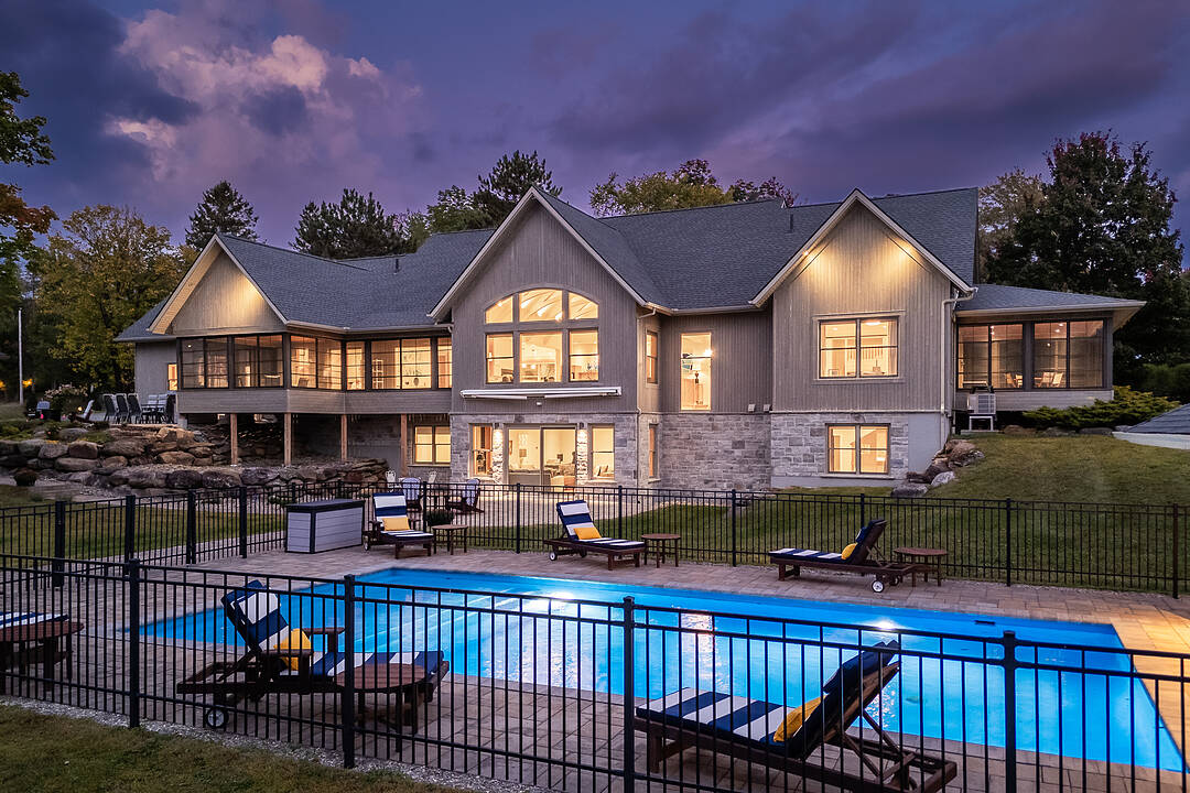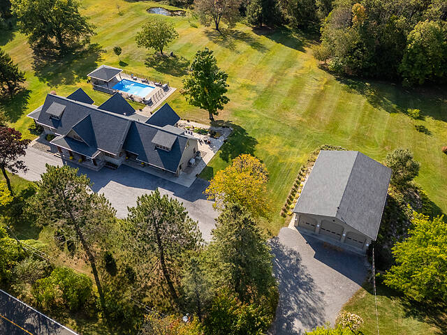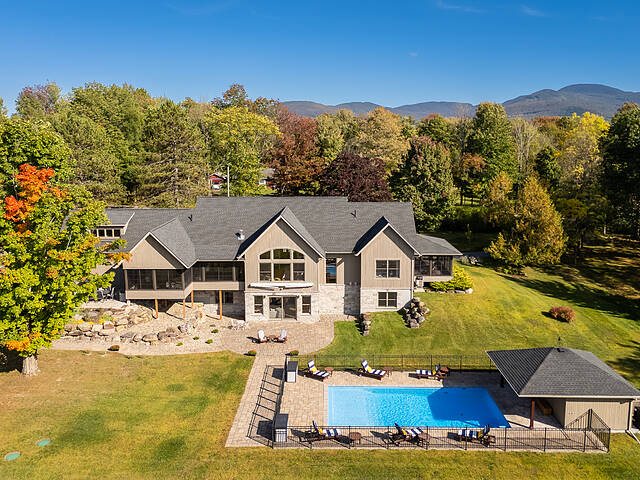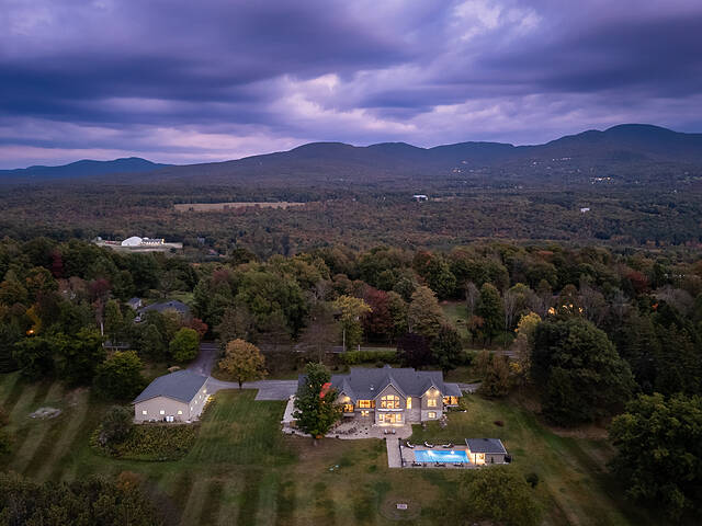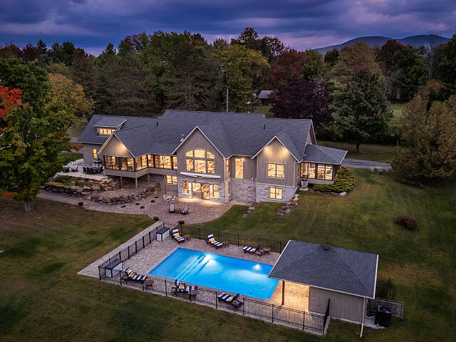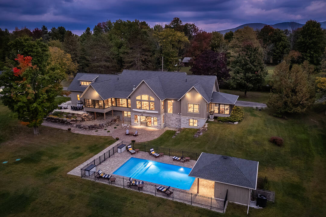 Le terrain de près de 24 acres a été soigneusement aménagé avec terrasses, piscine creusée, pool house et sentiers de marche invitant à la détente en pleine nature.