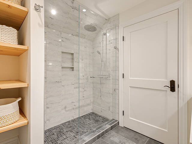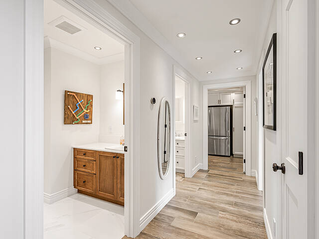 Le rez-de-jardin, entièrement doté de planchers chauffants, propose une impressionnante salle familiale donnant sur la cour arrière. On y retrouve également deux grandes chambres, une salle d’eau, une salle de bain complète ainsi qu’une salle de lavage pratique et fonctionnelle.