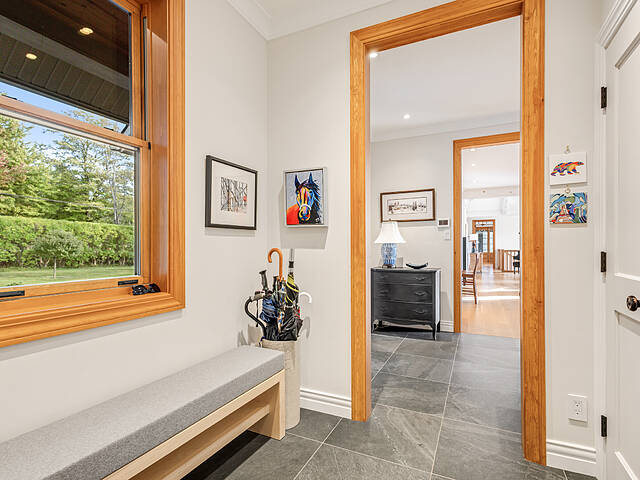 Dès l’entrée, l’aire de vie principale séduit par sa fenestration généreuse, ses magnifiques arches et l’atmosphère chaleureuse qui s’en dégage.