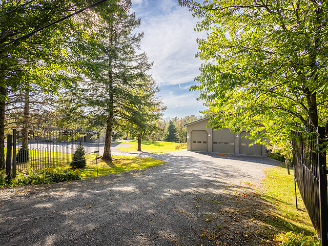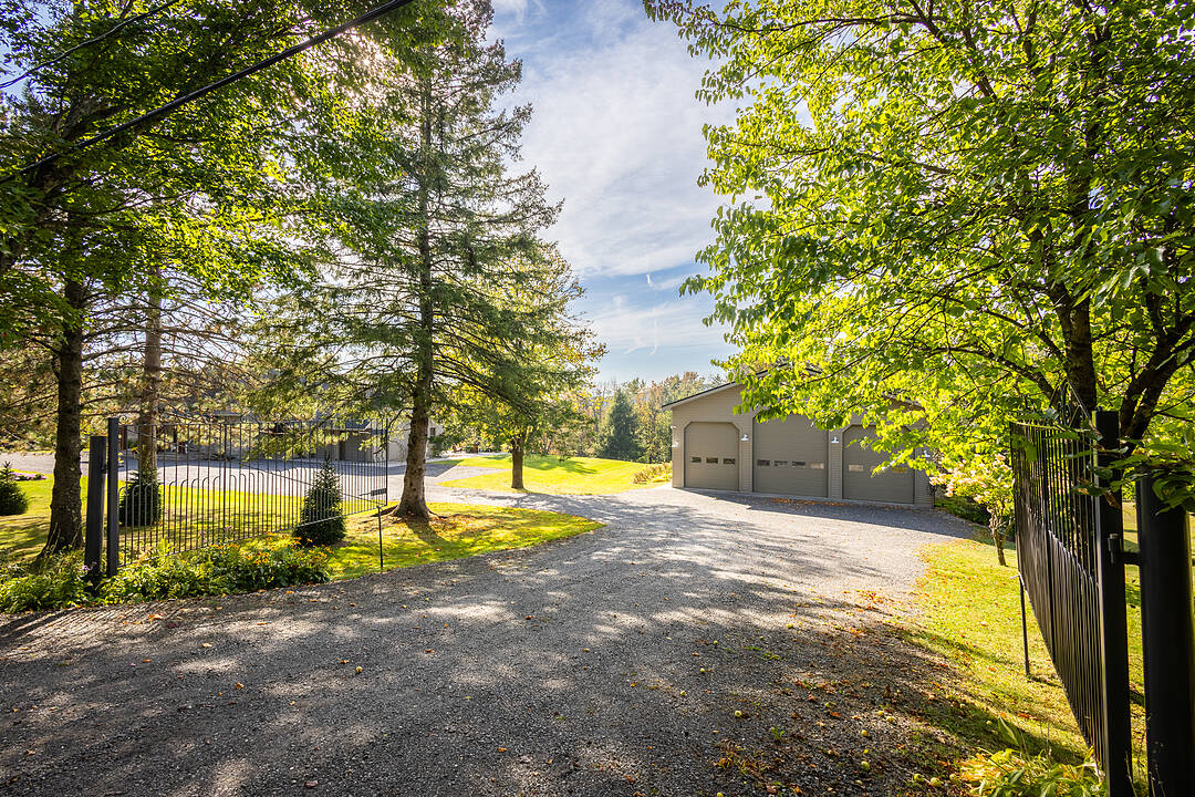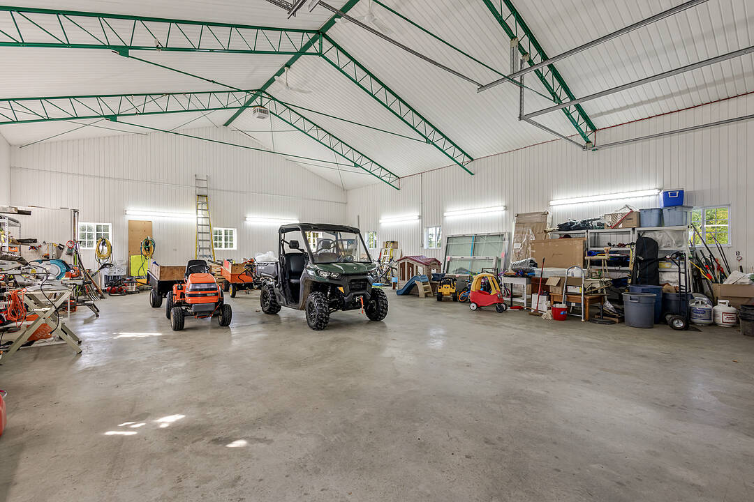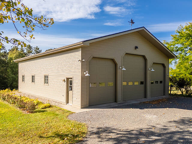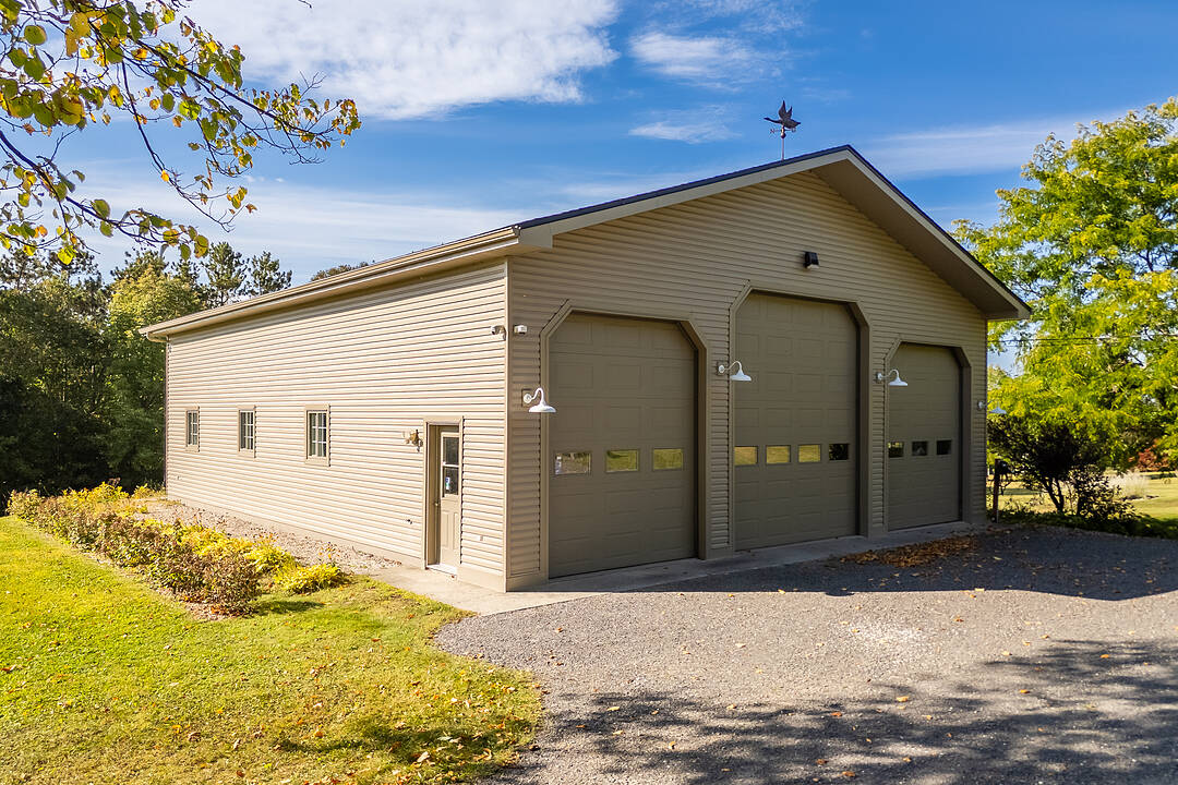 Pour un maximum de fonctionnalité, un garage détaché triple aux plafonds de plus de 20 pieds permet de ranger aisément équipements, véhicules et machinerie.
