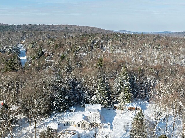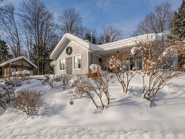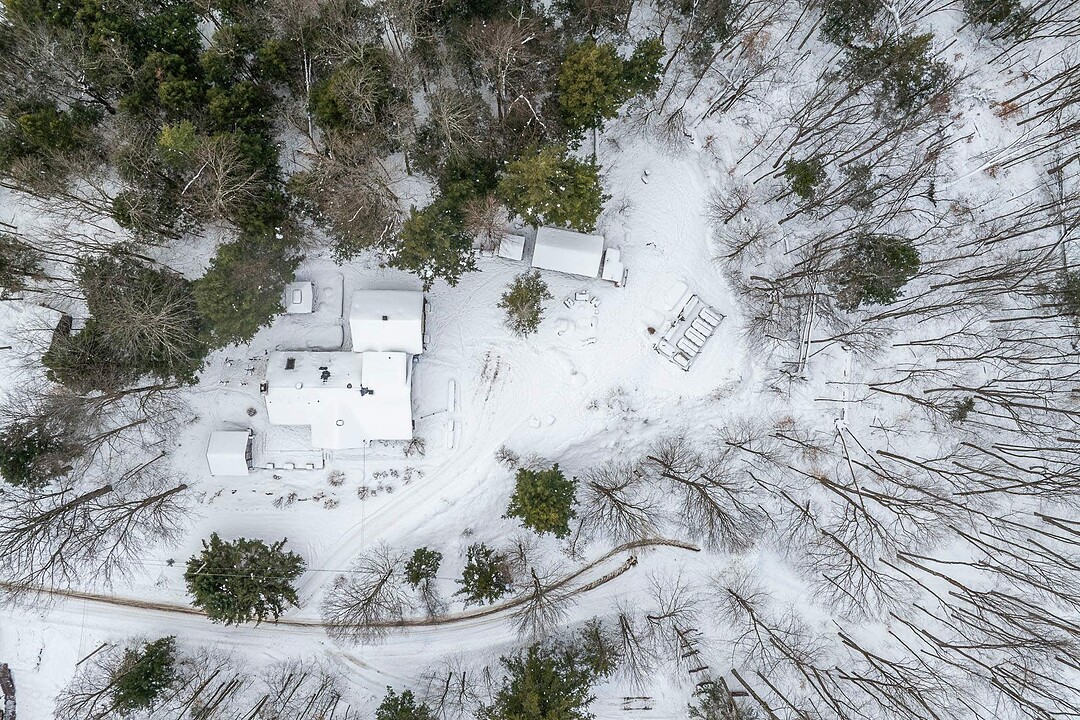 Située au bout d'une rue sans issue et à flanc de montagne, cette propriété bénéficie d'une intimité inégalée ainsi que d'une splendide vue hivernale sur la montagne.