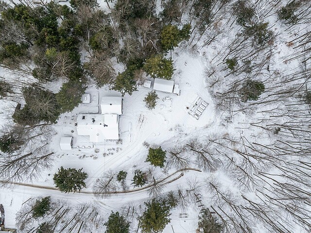 Implantée sur un terrain de près d'un acre, magnifiquement boisé, la propriété dispose d'un vaste potager et d'un poulailler, offrant une multitude de possibilités.