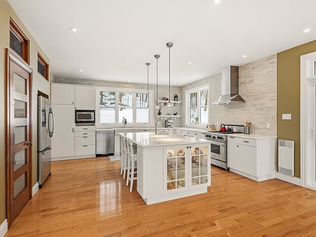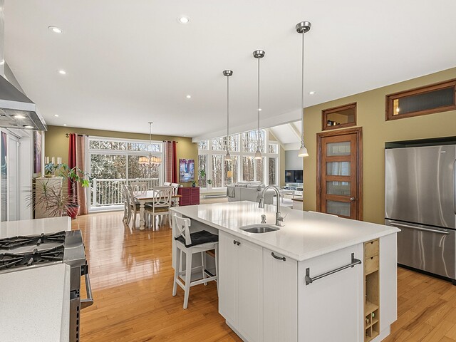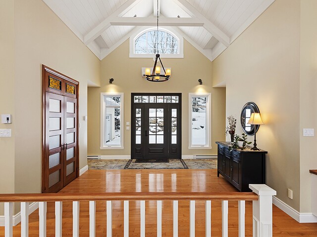 Dès votre arrivée, un impressionnant effet de grandeur et de luminosité se dégage grâce aux plafonds cathédrales et à la fenestration abondante, laissant entrer une généreuse lumière naturelle.