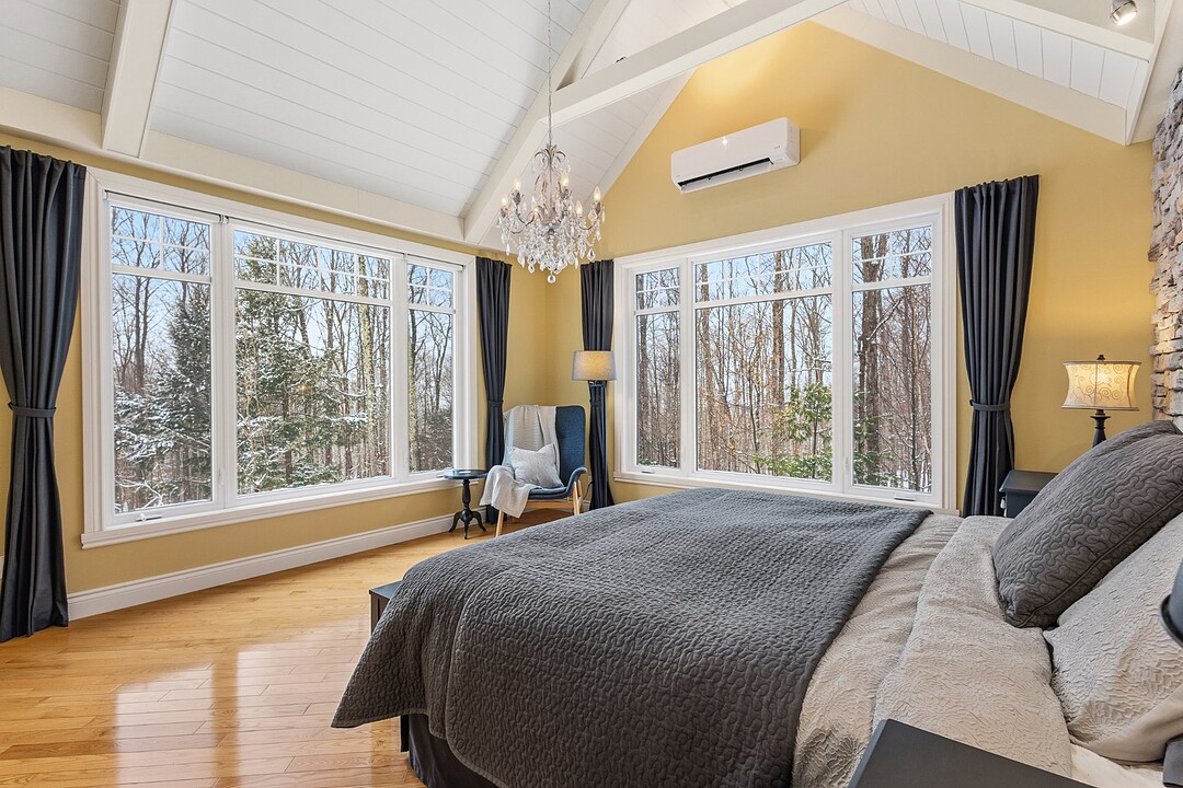 Prestations haut de gamme : - Plancher chauffant au rez-de-jardin - 3 thermopompes haute efficacité (-30 °C) - 2 foyers au propane (bonbonnes 25 ans, 2024) - Entrée électrique et fibre optique souterraines - Terrasse surélevée en PVC avec auvent - Fenêtres Fenplast (porte-patio de 12 pieds, triple vitrage au rez-de-jardin) - Panneaux d'isolation haute densité au sous-sol et sur le béton du garage