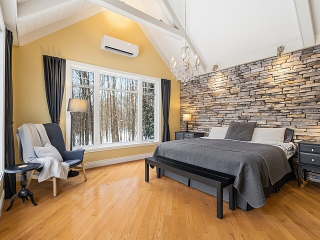 Sur le même niveau, vous bénéficiez d'un quartier des maîtres d'exception comprenant une vaste chambre à coucher avec plafond cathédrale, un walk-in et une salle de bain attenante.
