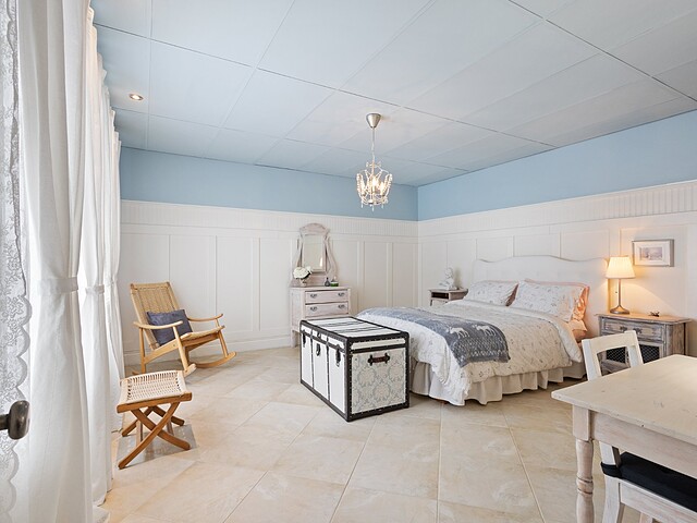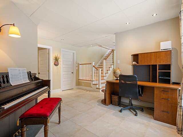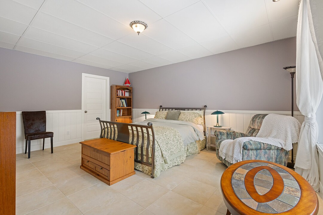 Le rez-de-jardin propose 2 grandes chambres à coucher, chacune dotée d'un walk-in, une salle familiale avec foyer, une salle de bain, un espace bureau ainsi qu'un vaste rangement offrant une multitude de possibilités d'aménagement.