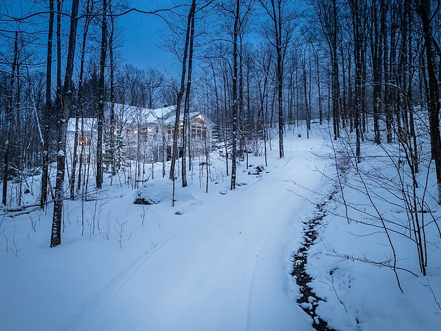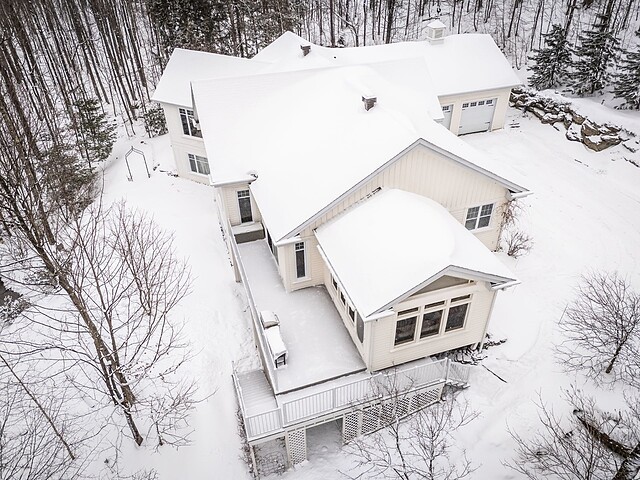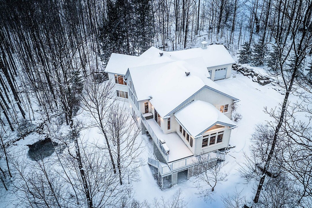 Résidence unique sise sur plus de 4 acres de terrain, à seulement quelques minutes du village ! Perchée à flanc de montagne, cette propriété se distingue par ses volumes impressionnants, sa qualité de construction et son intimité absolue. L'ambiance y est chaleureuse et conviviale, grâce à ses foyers, ses plafonds cathédrales et ses vues sur la nature environnante. Elle offre 3 vastes chambres à coucher, une véranda fermée, un garage double et bien plus encore. Entourée d'une végétation exceptionnelle ainsi que d'une prairie, cette propriété propose un cadre de vie paisible et privilégié !