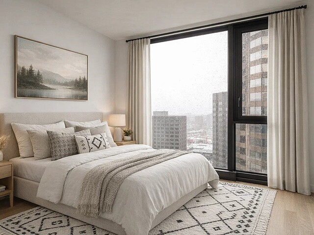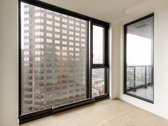 Cette unité de coin d'environ 507pc, offrant 1 chambre, est pensée pour ceux qui veulent un pied-à-terre intelligent au centre-ville ou un produit d'investissement simple, efficace et recherché. Grâce à sa fenestration pleine hauteur et son orientation, elle profite d'une luminosité remarquable et de vues saisissantes vers le fleuve Saint-Laurent et le Vieux-Port -- un vrai effet ''WOW''.