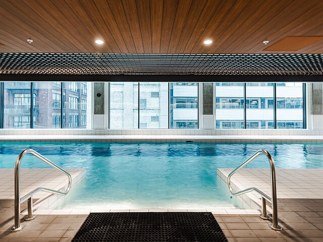 Maestria propose plus de 40 000pc d'aires communes spectaculaires : piscines intérieure et sur le toit, spa complet (bain à remous, hammam, sauna), salle d'entraînement vitrée digne d'un hôtel, golf virtuel, bibliothèque, espace de création, salle de cinéma, lounges et passerelle suspendue au 26e étage avec vue directe sur la Place des Festivals.