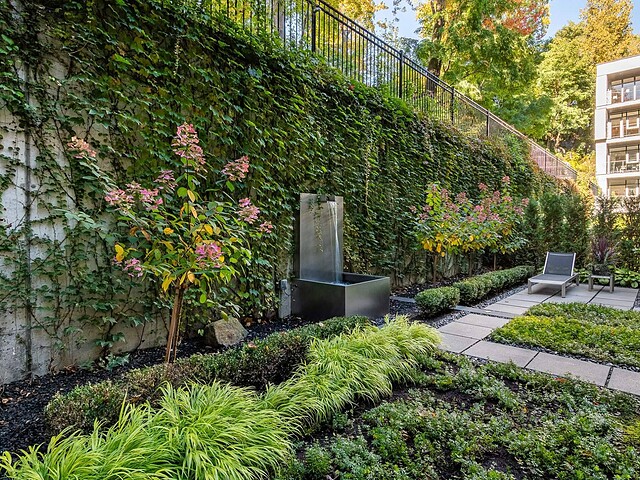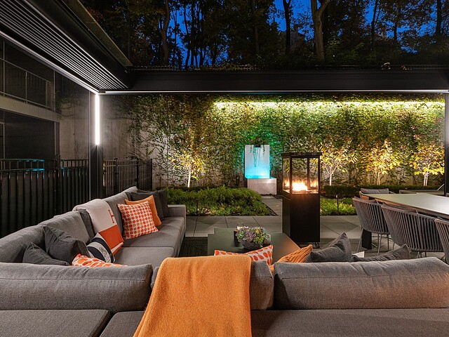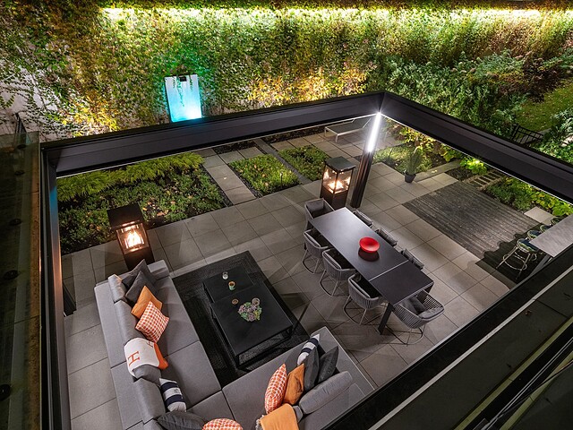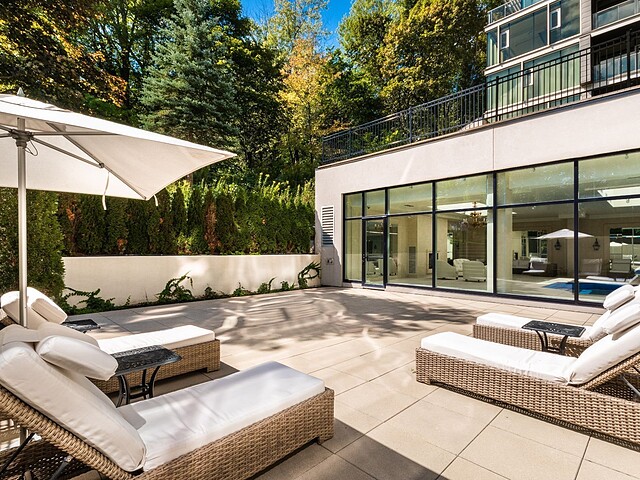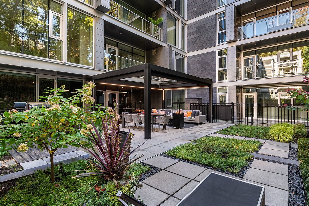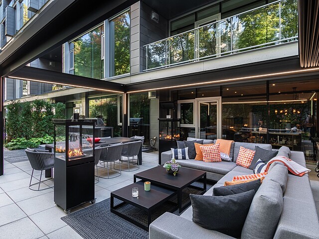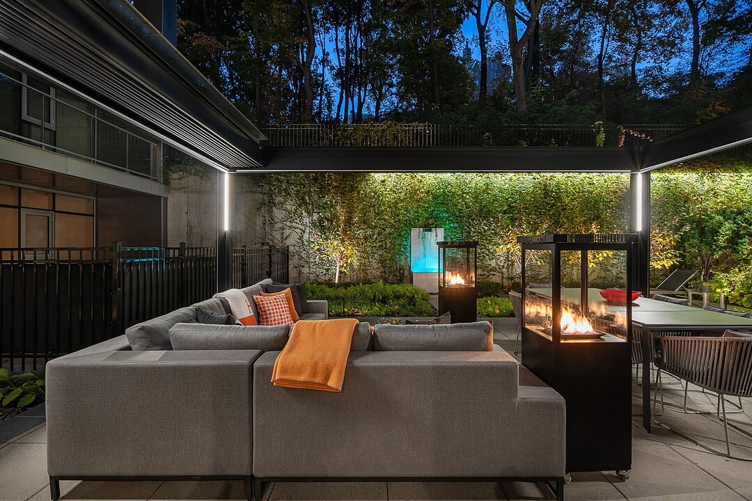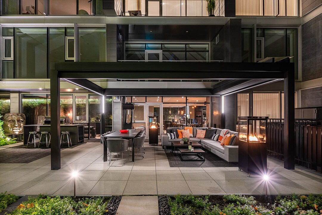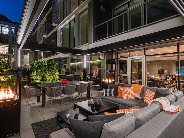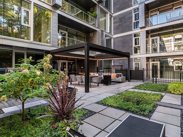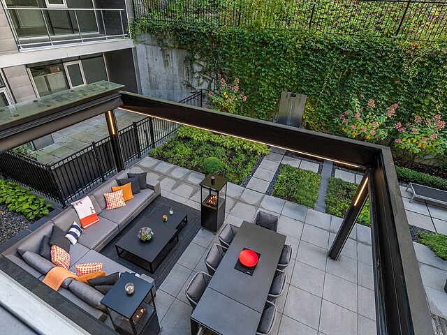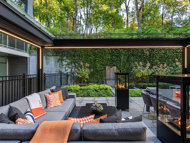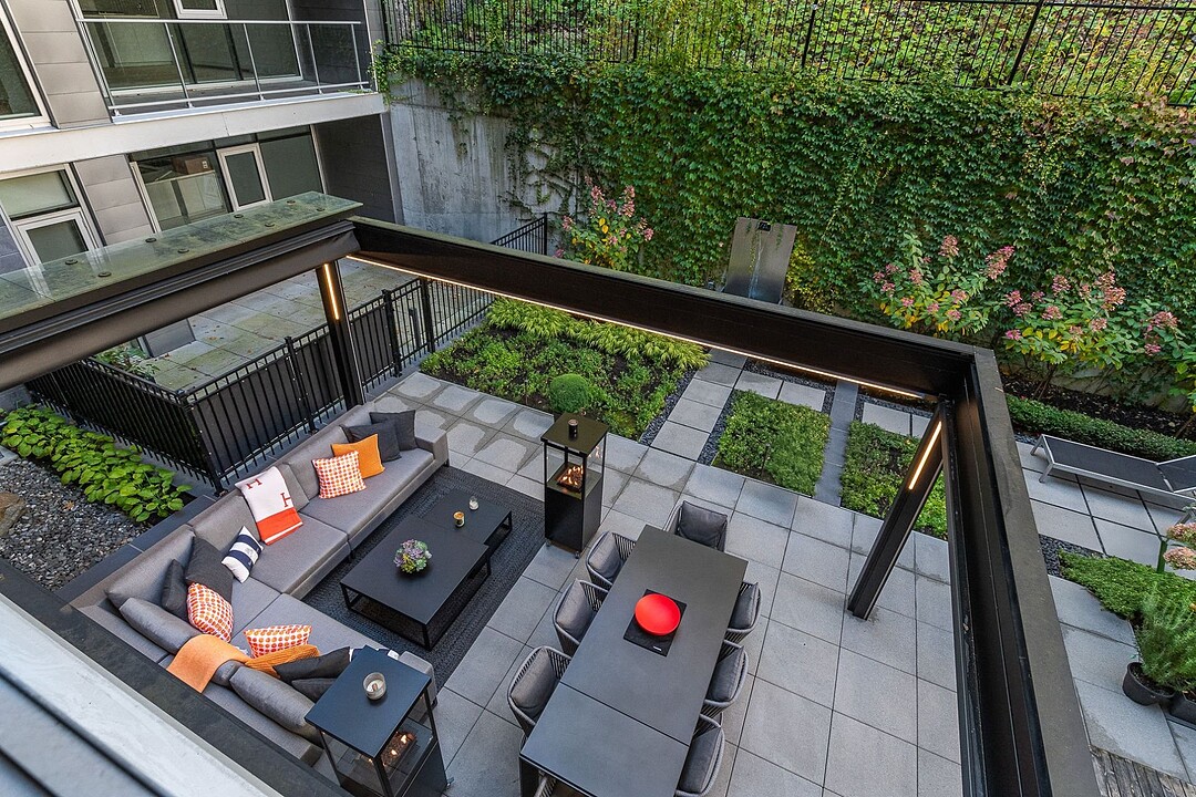 Au-delà des portes vitrées, la résidence se prolonge naturellement vers l'extérieur. La terrasse privée est un véritable sanctuaire urbain -- un salon et espace repas couverts, entourés de verdure, conçus pour savourer un café matinal, un souper d'été ou une soirée entre amis au coin du feu. Plus loin, la cour et les jardins méticuleusement aménagés de M sur la Montagne offrent l'expérience rare de vivre en pleine nature, tout en restant à quelques pas du centre-ville animé de Montréal.