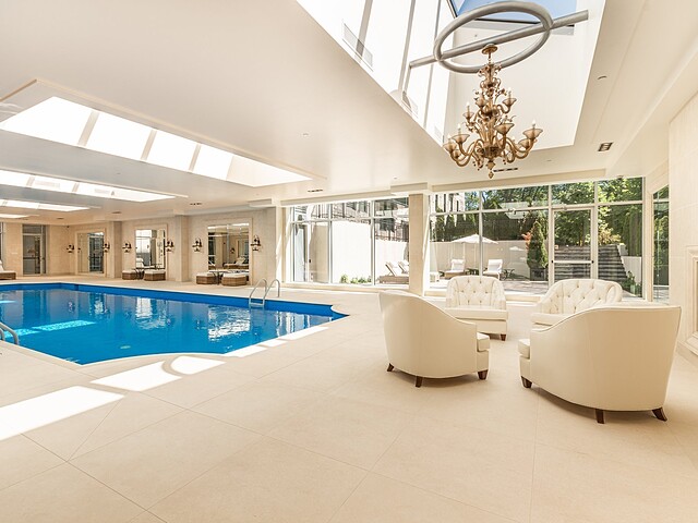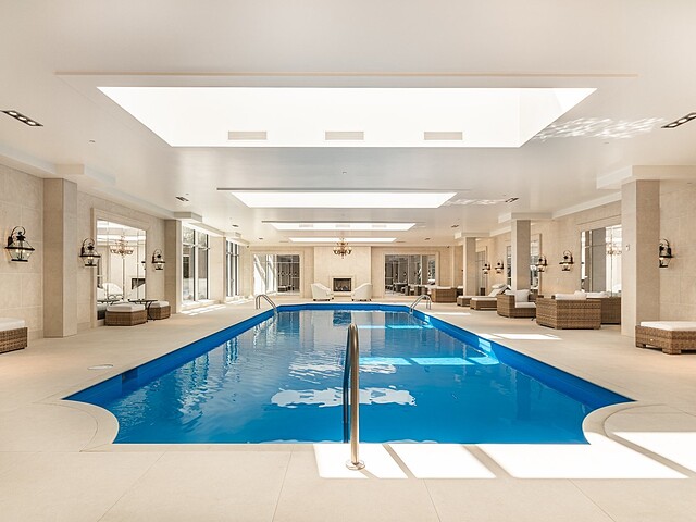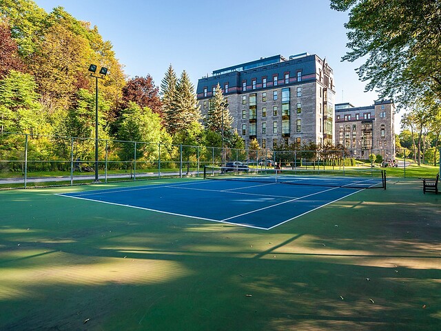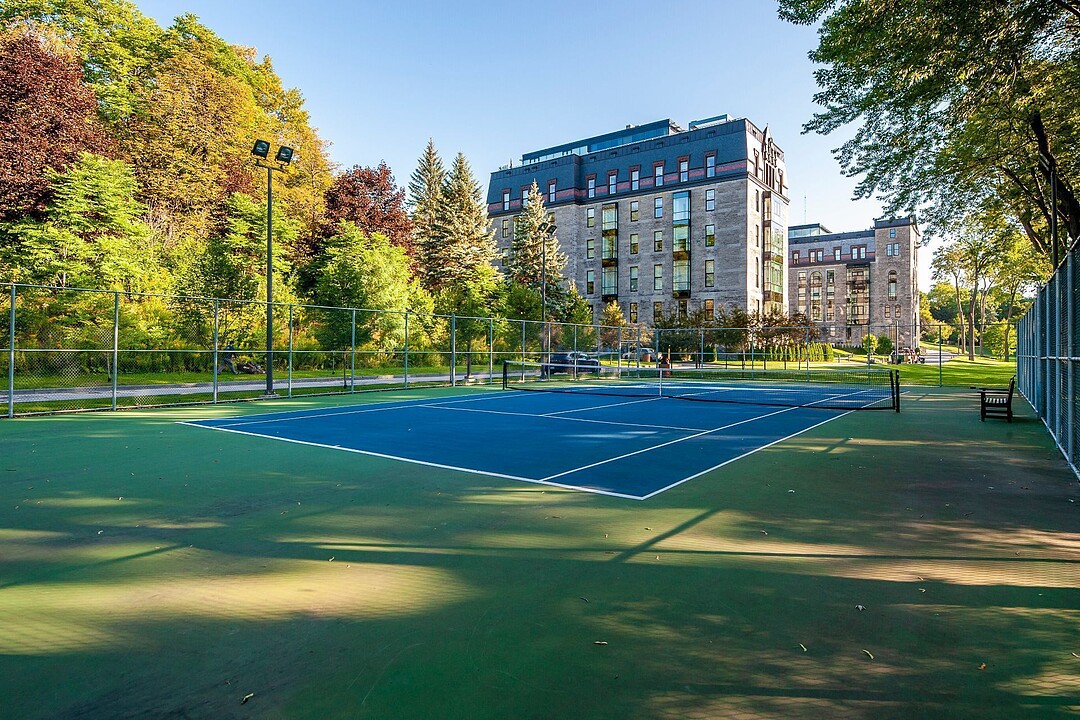 Le domaine s'étend sur plus de seize acres de parc privé -- un environnement paisible et sécurisé comprenant sentiers de marche, jardins soignés et vues imprenables sur le Mont-Royal. Les résidents bénéficient d'un éventail d'aménagements dignes d'un hôtel cinq étoiles : centre de bien-être avec spa, piscine intérieure, salle d'entraînement ultramoderne et court de tennis privé.