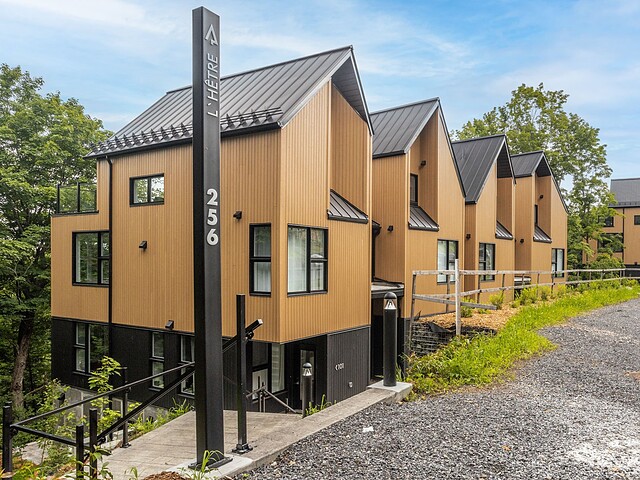 Arborescence condos refuges is an eco-responsible living environment with sleek Scandinavian architecture.