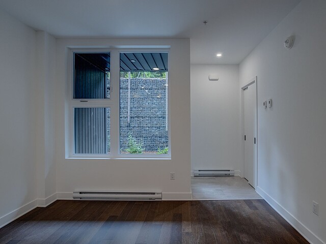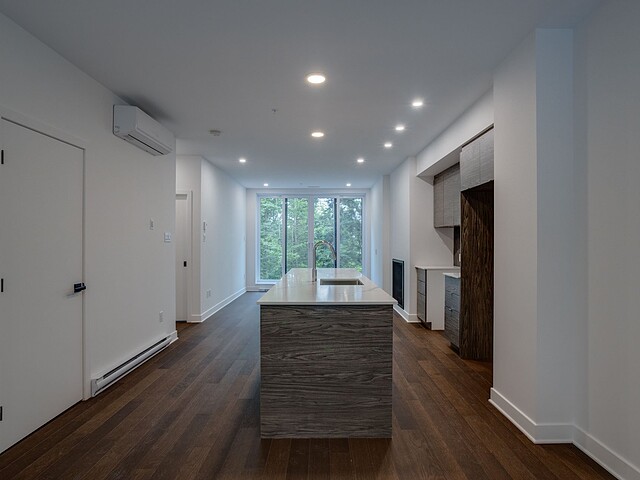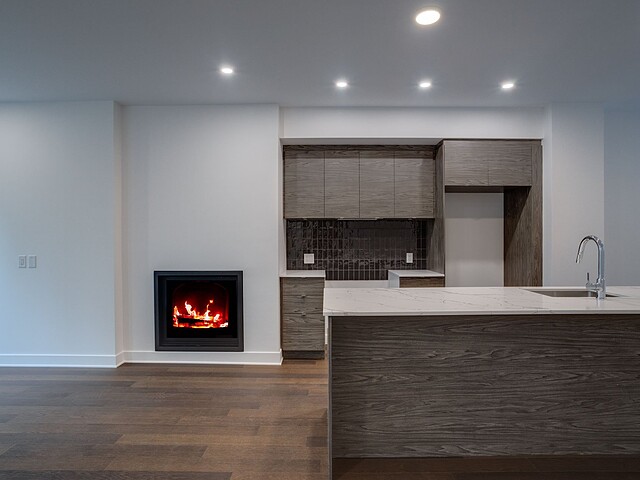 Large balcony with glass and aluminum railing Engineered wood flooring Quartz countertop in kitchen Gas fireplace Instant water heater