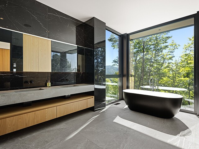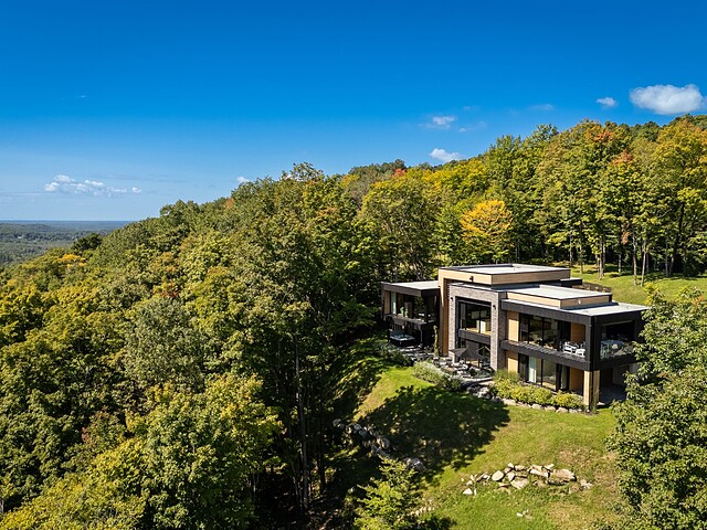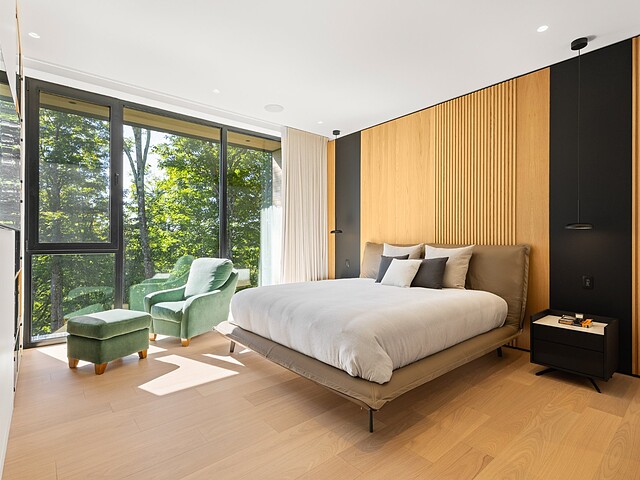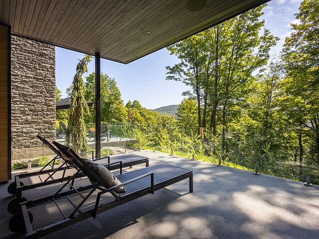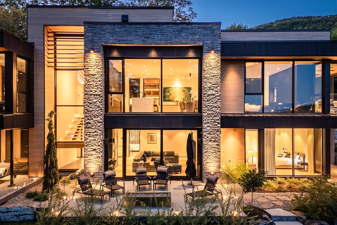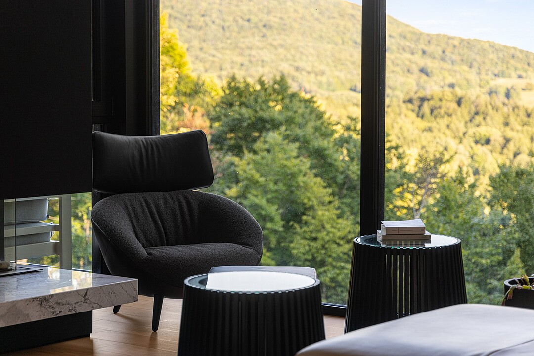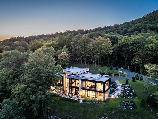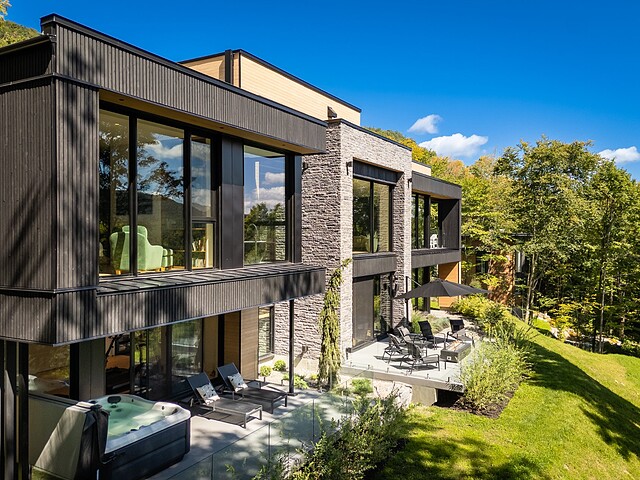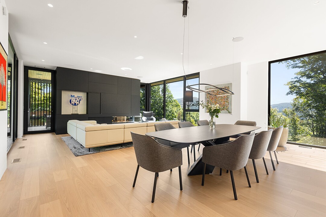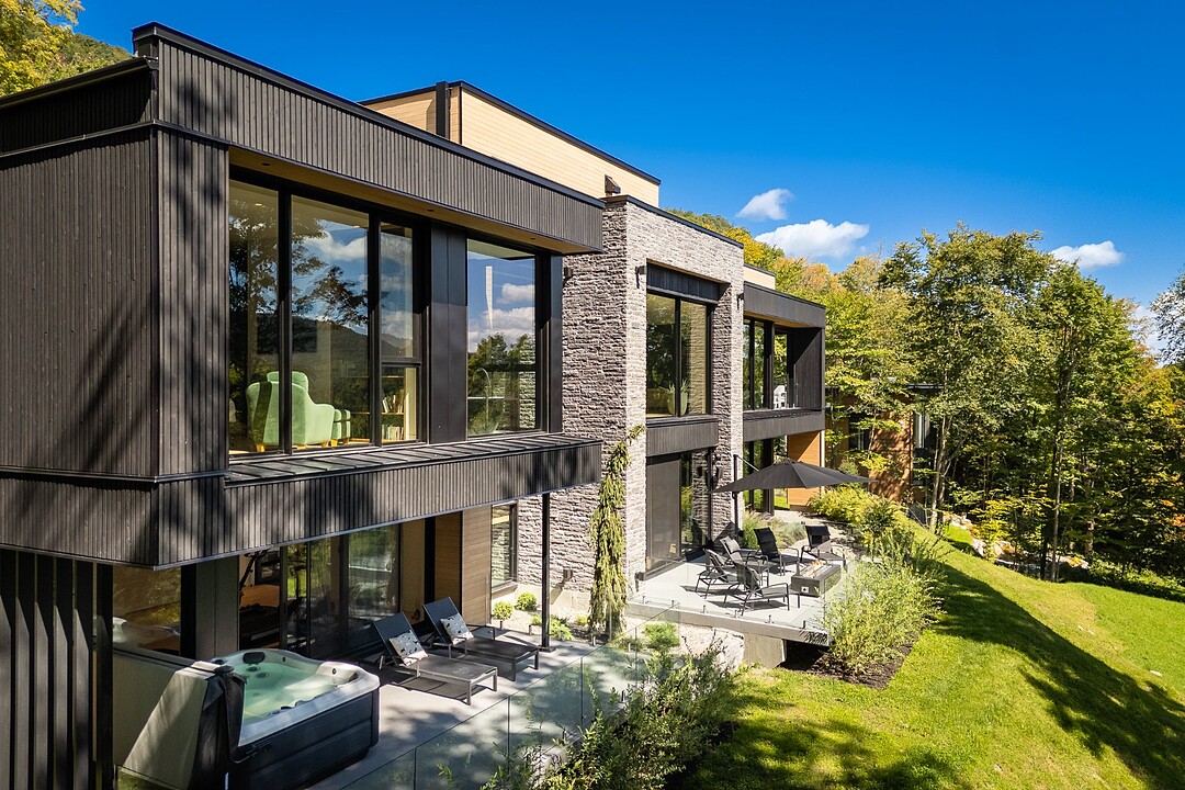 Architectural masterpiece with an unparalleled concept in the heart of the mountains! Situated on a private, dead-end road, this residence is a true high-end nature retreat. The breathtaking fenestration offers a sweeping view of the surrounding mountains. The construction quality and choice of materials are unmatched in the market. In addition to its 4,500 square feet of living space, enjoy three terraces set in a bucolic setting. This prestigious project was designed by the renowned firm BRAINNÜSTUDIO. An ideal residence for those seeking privacy in the utmost exclusive comfort!