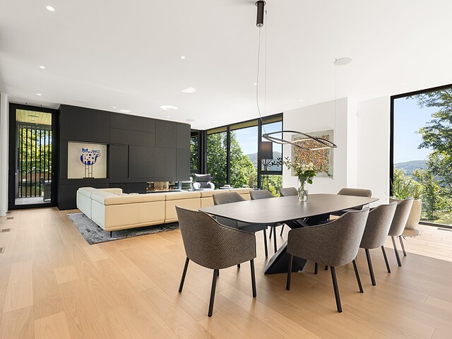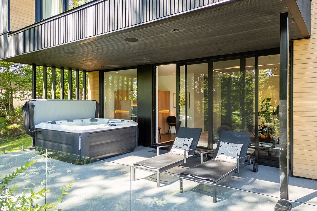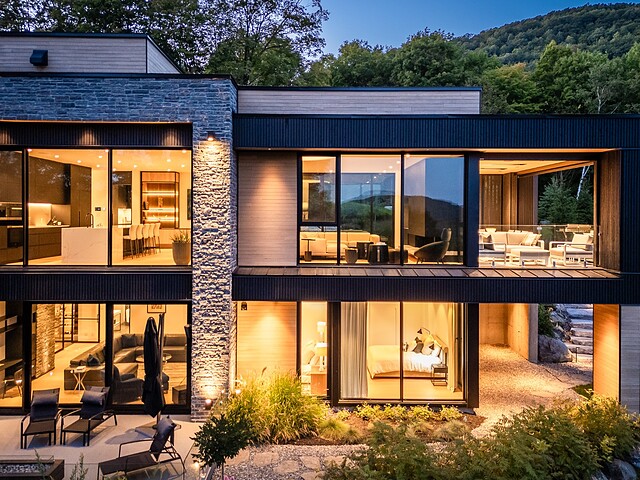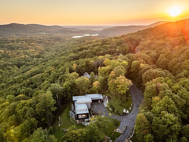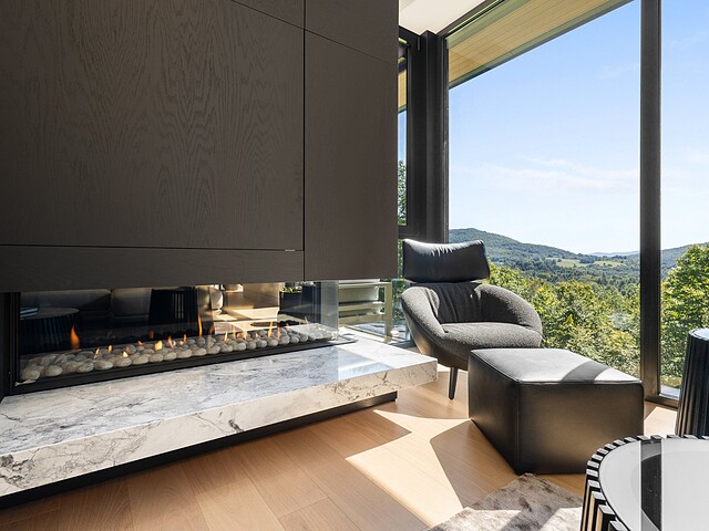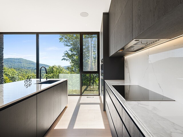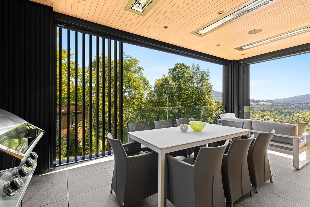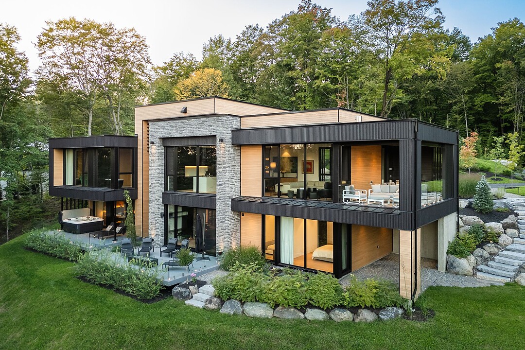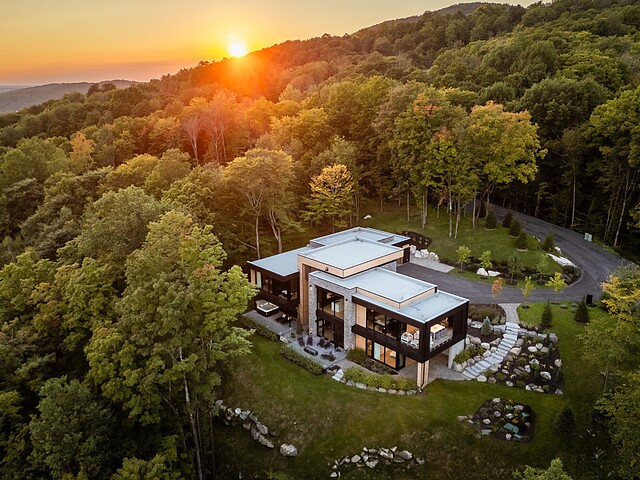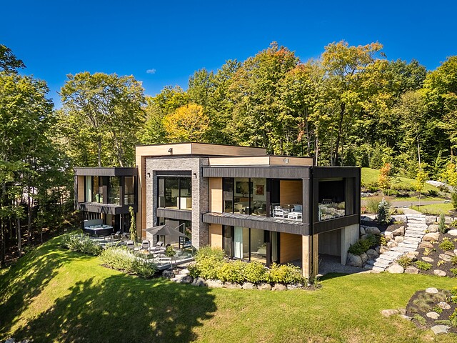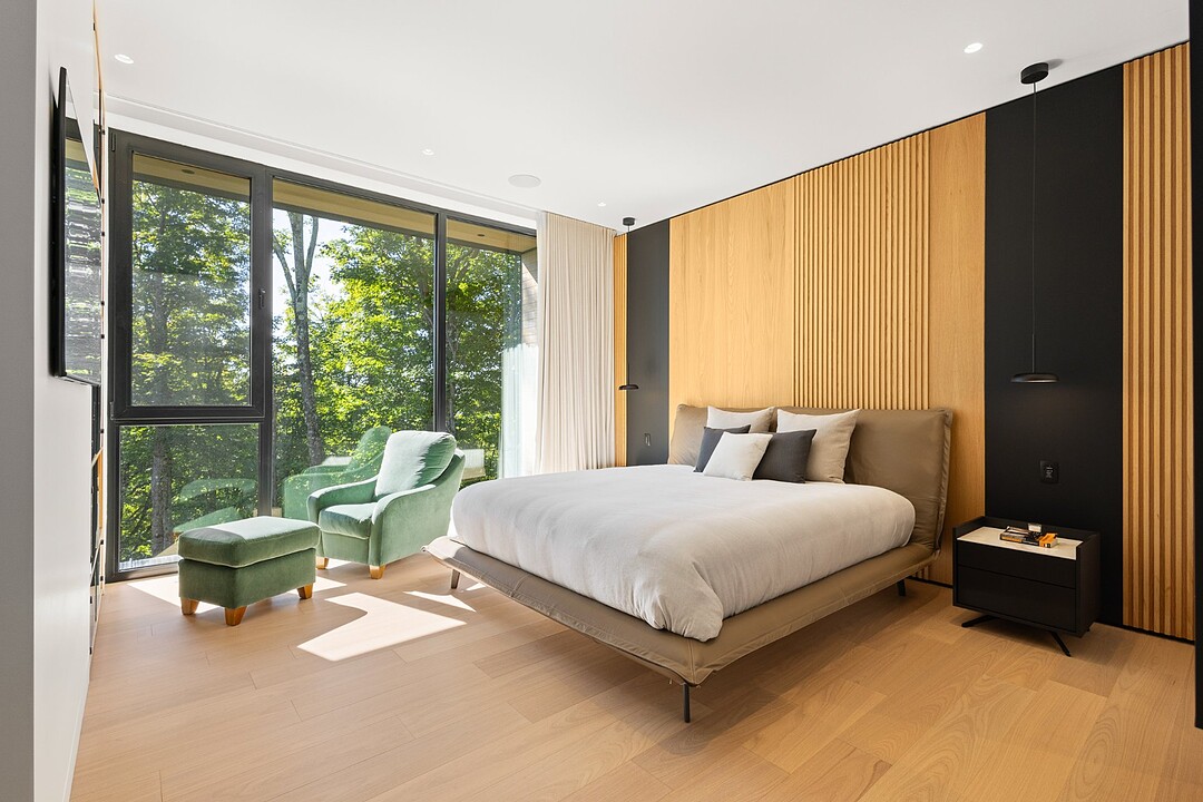 Architectural masterpiece with an unparalleled concept in the heart of the mountains! Situated on a private, dead-end road, this residence is a true high-end nature retreat. The breathtaking fenestration offers a sweeping view of the surrounding mountains. The construction quality and choice of materials are unmatched in the market. In addition to its 4,500 square feet of living space, enjoy three terraces set in a bucolic setting. This prestigious project was designed by the renowned firm BRAINNÜSTUDIO. An ideal residence for those seeking privacy in the utmost exclusive comfort!