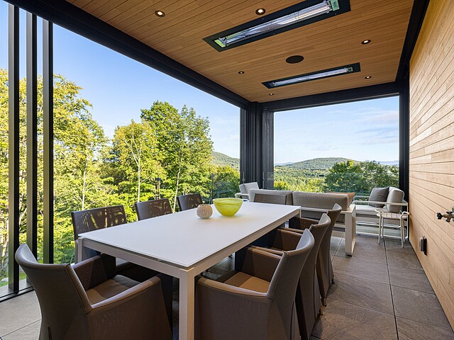 The ground floor terrace is equipped with integrated and motorized mosquito screens (Exo System), three built-in patio heaters, a built-in BBQ area, a dining area, and a lounge. A truly unique place to gather with family or friends!