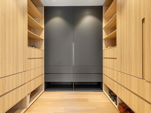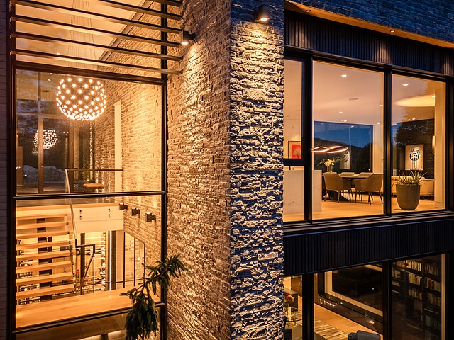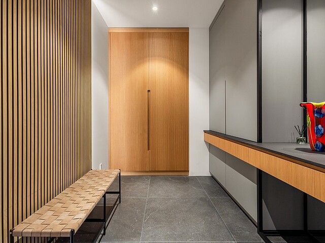 This design, with its impressive volumes, harmoniously combines premium materials with inviting living spaces.