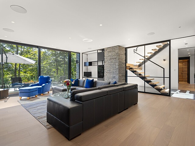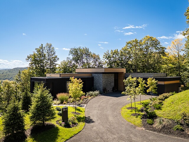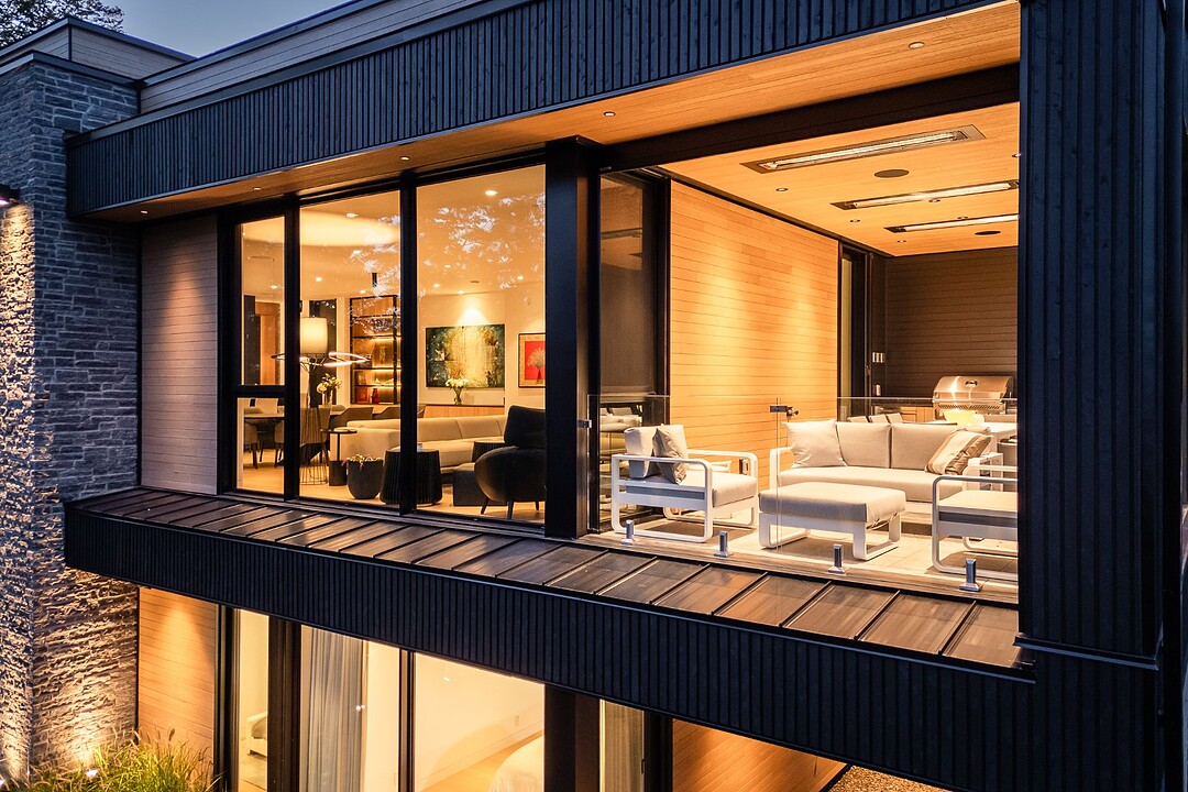 Built on a spectacular wooded lot of nearly 3 acres, this residence stands out with its contemporary, sleek, and trendy style.