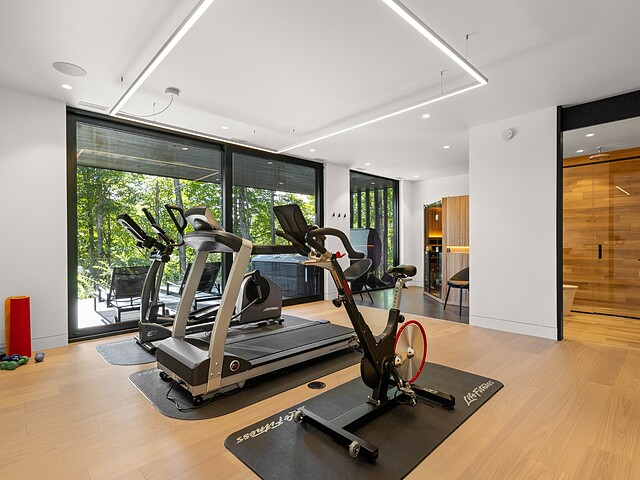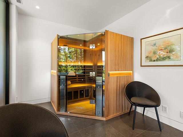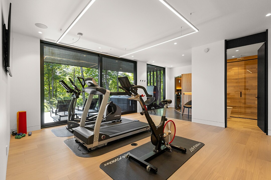 As you descend to the garden level, you'll enjoy a magnificent wine cellar with a glass panel, a family room, two bathrooms, two bedrooms, a gym, and an infrared sauna.